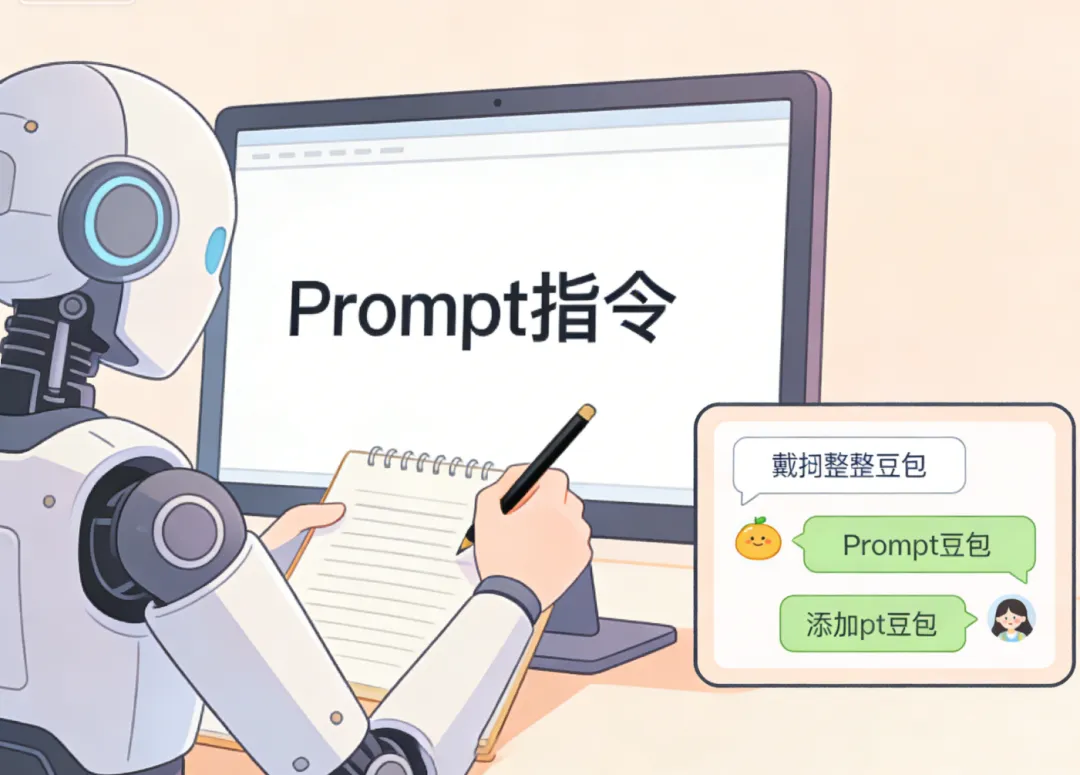配图建议:搭配“文案+AI机器人”插画,比如机器人拿着笔在写文案,旁边有电脑屏幕显示Prompt指令,色调柔和,与文案内容呼应;若插入示例截图,可将豆包对话框截图裁剪整齐,添加简单边框,提升美观度。