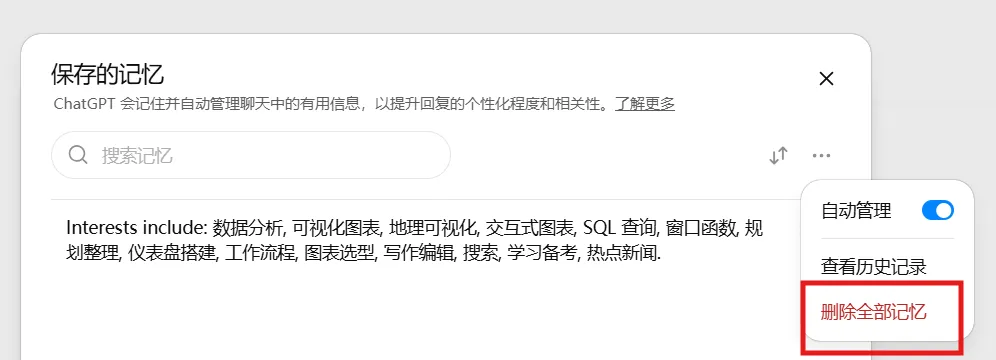 三,清除 ChatGPT 记忆