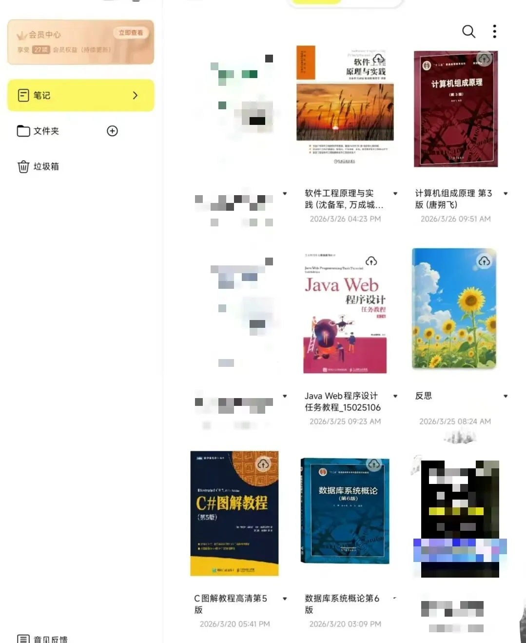 大学教材大部分是PDF格式的,我一般会提前把课本下载好,然后导入云记。云记里给笔记本编辑好名称,没有封面的就给它配上一个封面,看起来和真实书架一样。