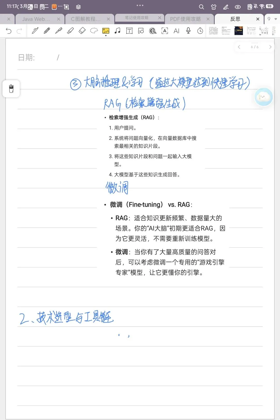 有时候记在一边的重要内容,想移到页面顶部对应章节的位置,直接用套索选中、拖过去,比重新抄一遍快太多了。