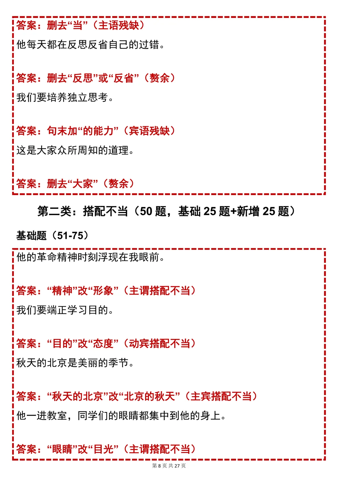 中考语文必背【初中语文病句四大考点】,可打印 快收藏