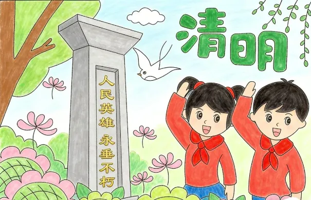 中小学生清明节手抄报模板(线稿涂色可打印)【免费保存下载】