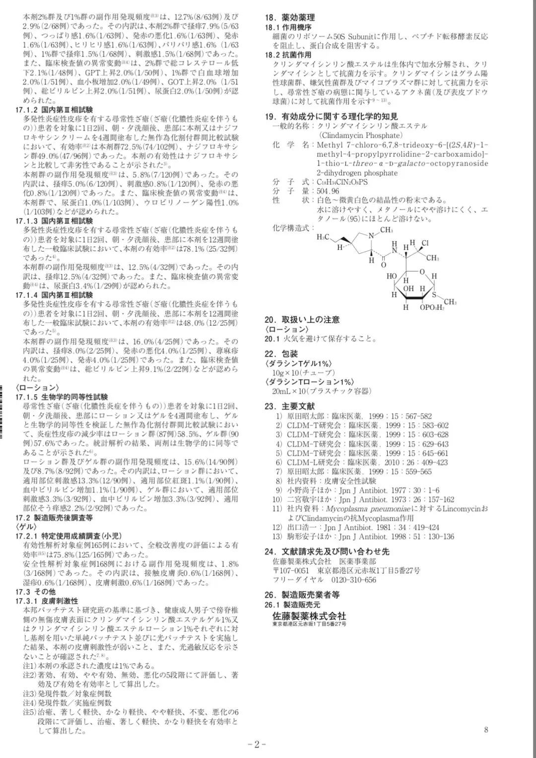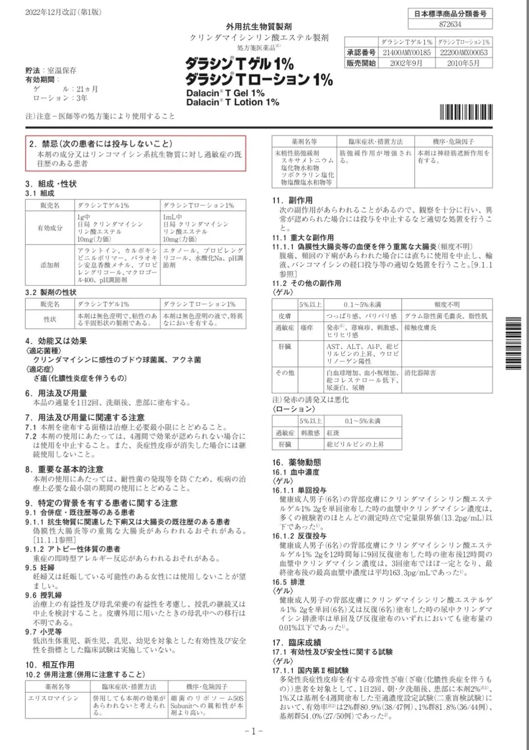 有效成分:每1克中含有日本药局方规格的克林霉素磷酸酯10毫克(效价)。