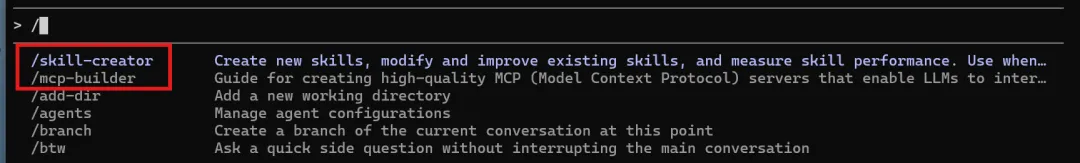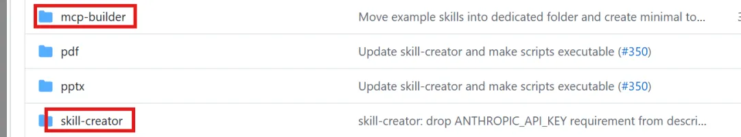 Anthropic提供了专门用于编写 skill(skill-creator) 和 mcp(mcp-builder)的skill。