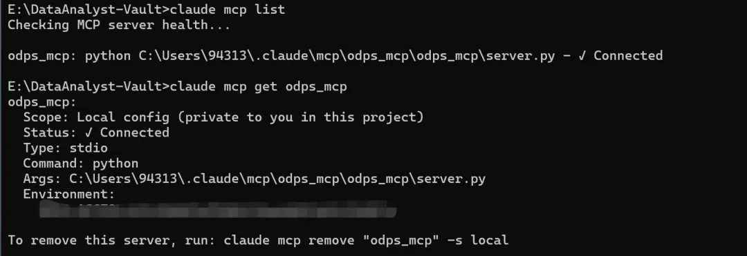 {"mcpServers": {"odps-mcp": {"command": "python","args": ["path/to/server.py"],"env": {"ODPS_ACCESS_KEY": "在这里配mcp环境变量,可能无法直接从系统读取环境变量"}}}}