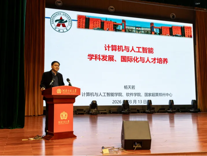 在主旨报告环节,杨天若院士围绕学科基础与建设成效、发展思路与具体规划以及国际化办学方向等内容进行了系统讲解。他结合国内外人工智能领域发展趋势,介绍了相关学科建设成果与未来发展路径,阐述了国际化人才培养理念,为在场师生提供了具有前瞻性和指导性的思考。