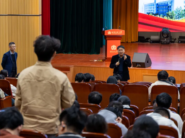 3月27日上午,我院AI时代高层次人才培养宣讲活动在平原湖校区第一报告厅成功举办。郑州大学学术副校长、计算机与人工智能学院院长杨天若院士率团队来校交流并作专题报告,软件学院院长张恩、副院长夏亮及学院师生代表400余人参加活动,活动由张恩主持。