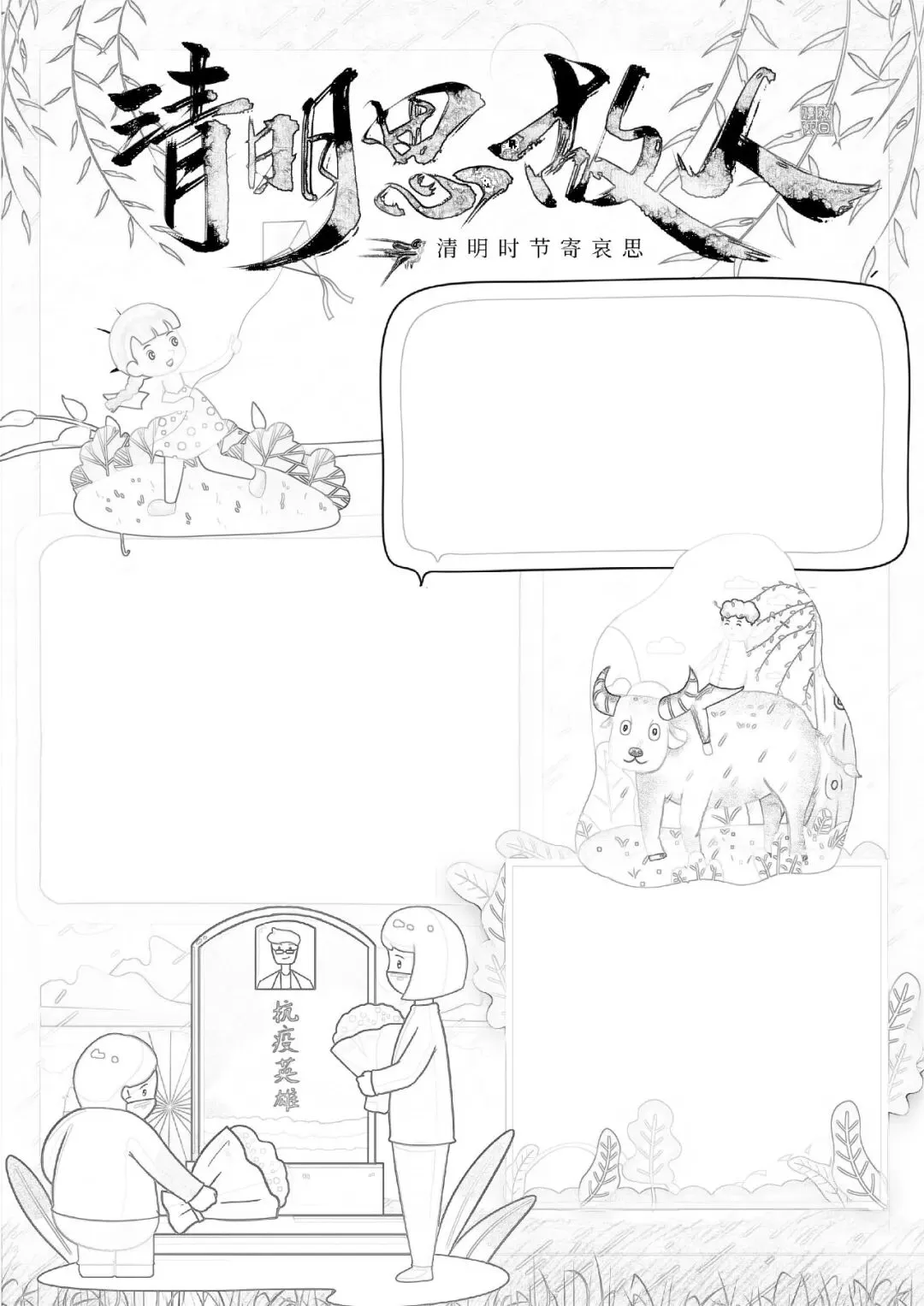 清明节手抄报大全(线稿可涂色,免费分享可打印)