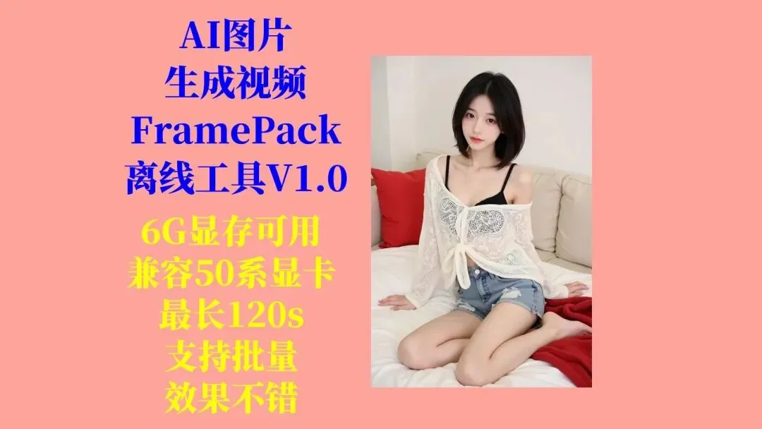 ✅ 低显存要求:兼容 50系列显卡(如RTX 3050),仅需6GB显存即可流畅运行✅ 超长生成:突破常规限制,支持 最长120秒(2分钟) 视频生成✅ 批量处理:可一次性导入多张图片,自动生成序列视频,提升效率✅ 开箱即用:无需搭建Python/PyTorch环境,解压即用,小白友好✅ 高画质输出:优化AI模型,生成视频清晰流畅,适合短视频/动画制作