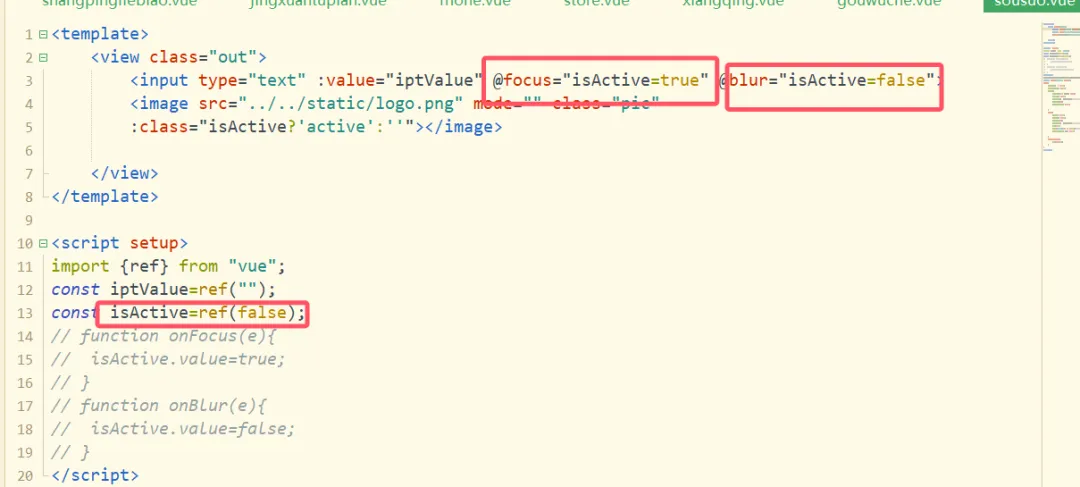 7、 @focus=”onFocus” @blur=”onBlur”,@focus聚集焦点,@blur失去焦点。