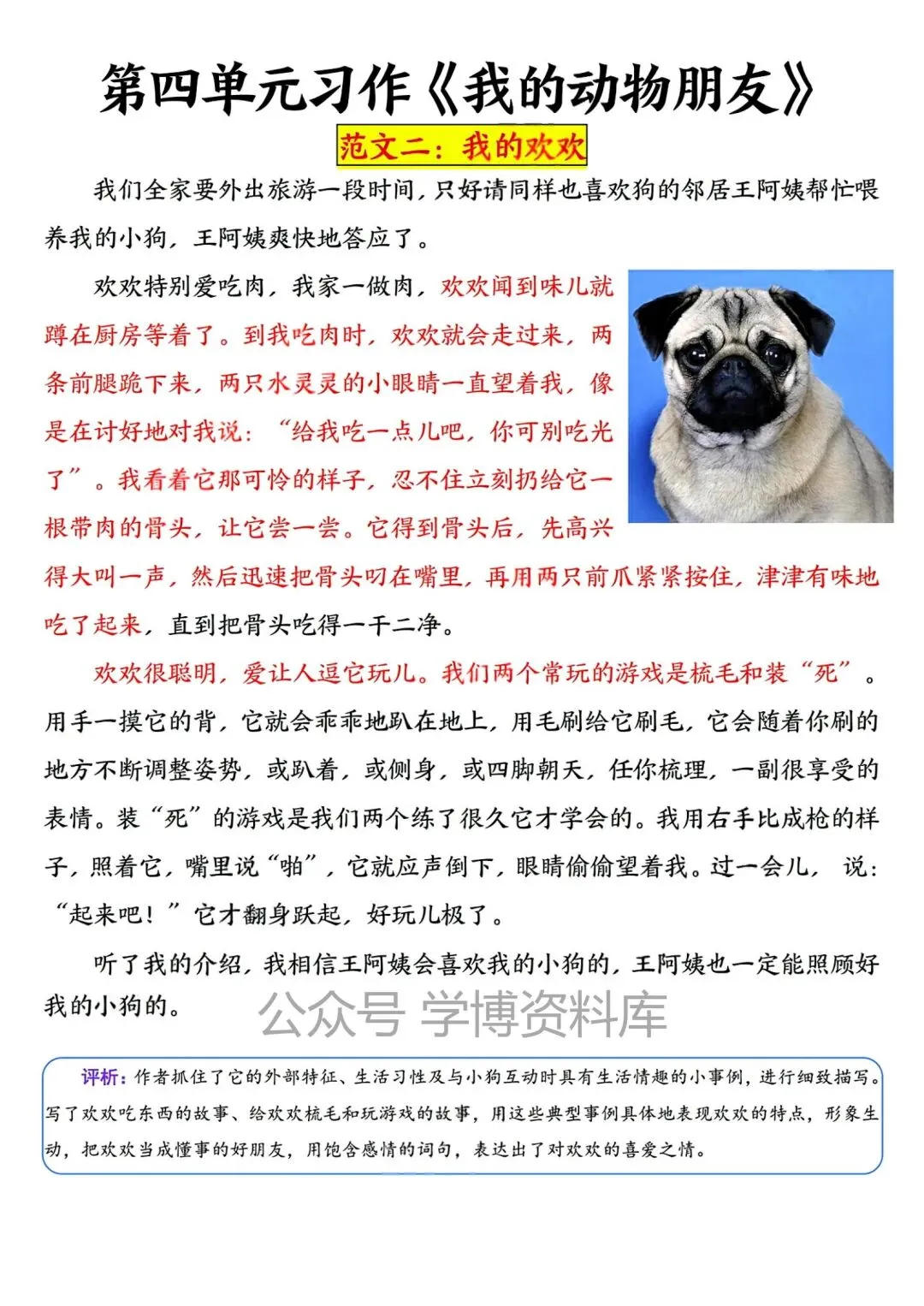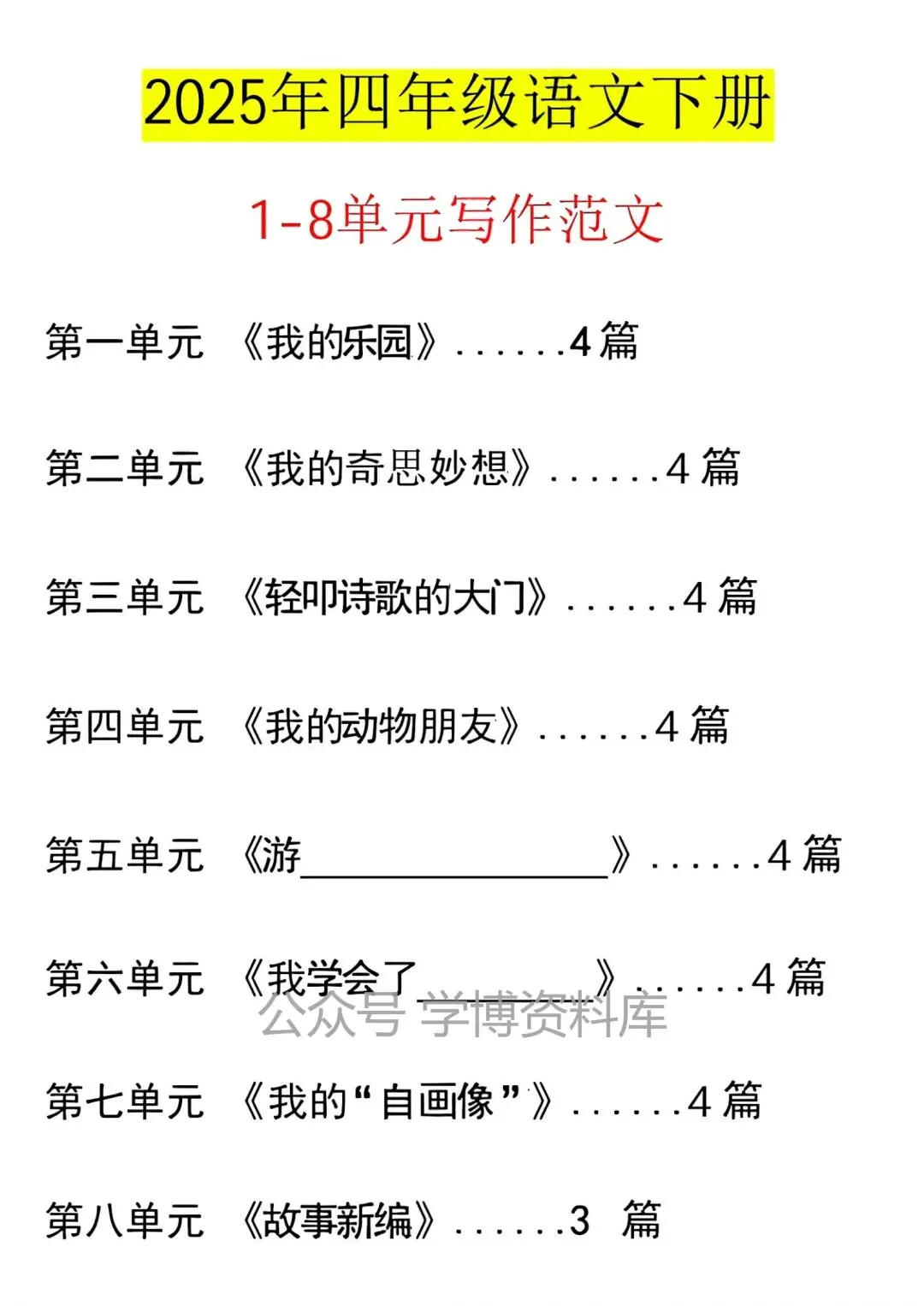 26春四年级下册语文1-8单元优秀范文,电子版可打印!