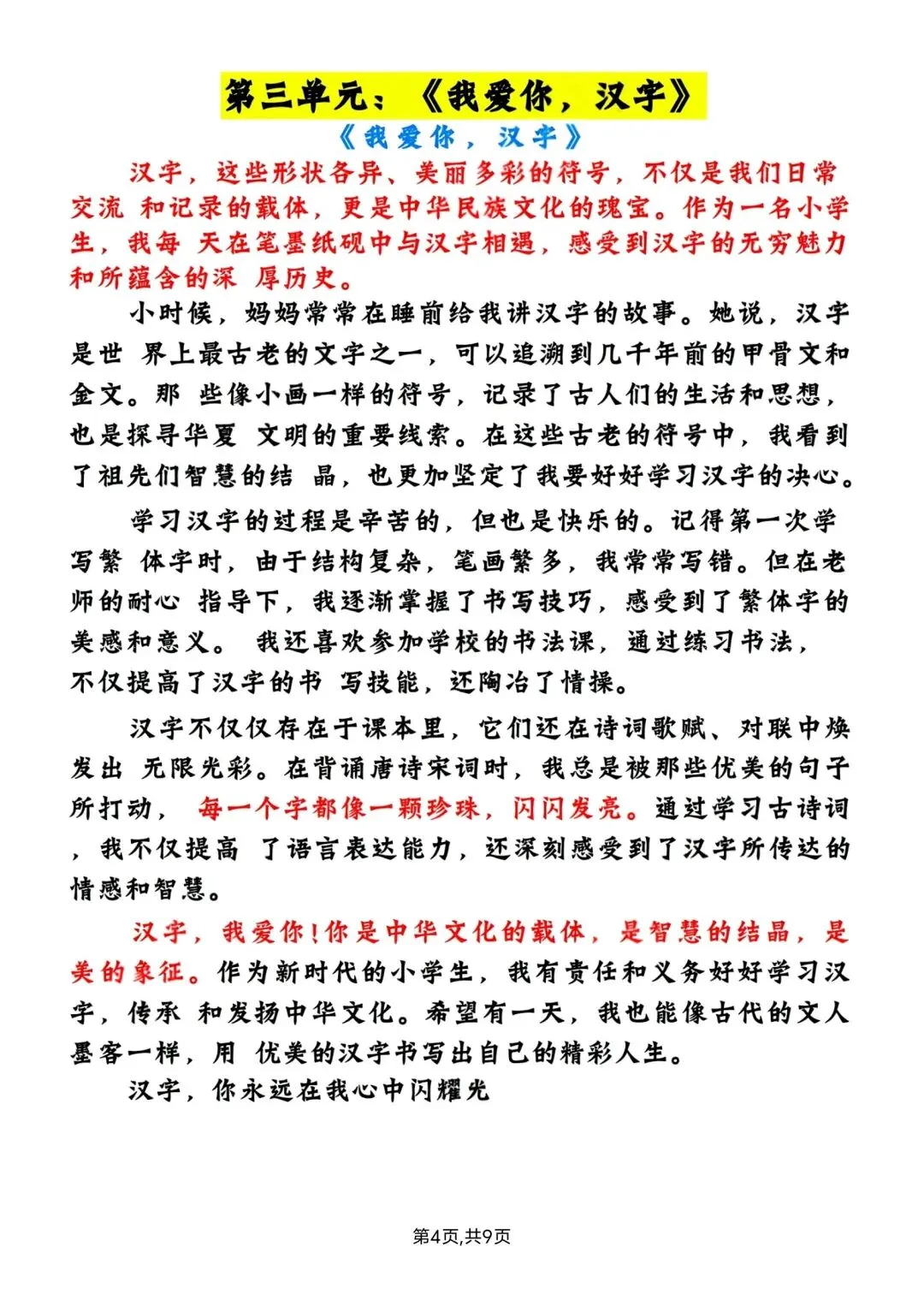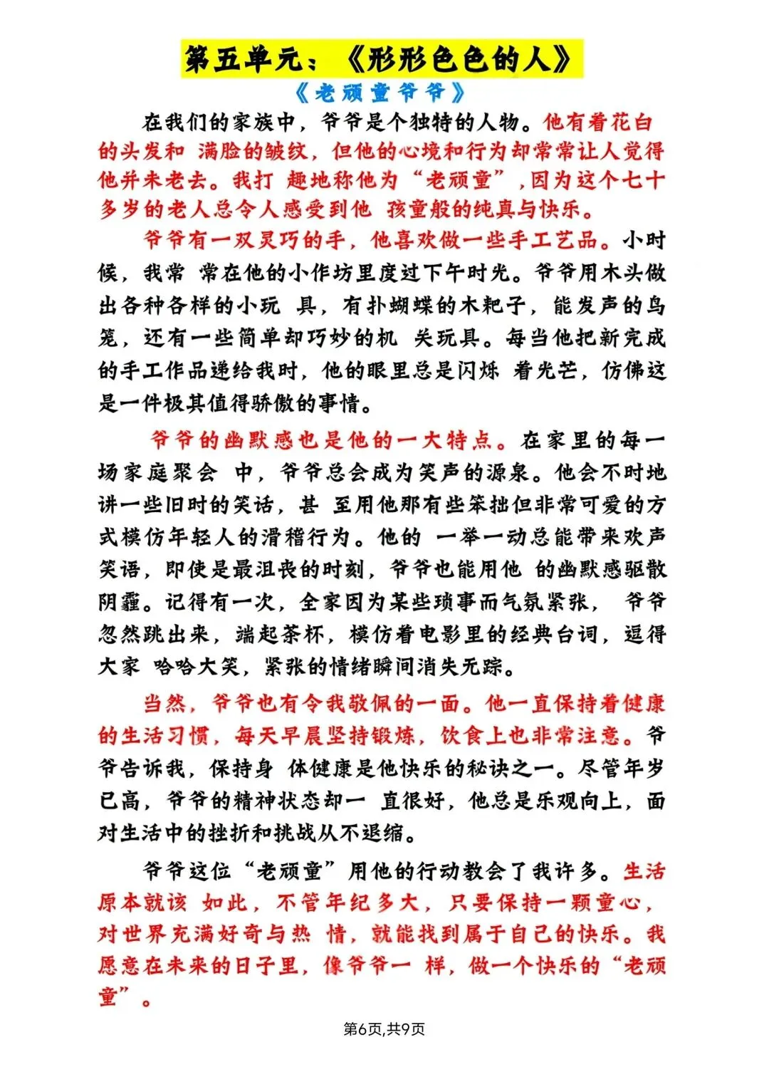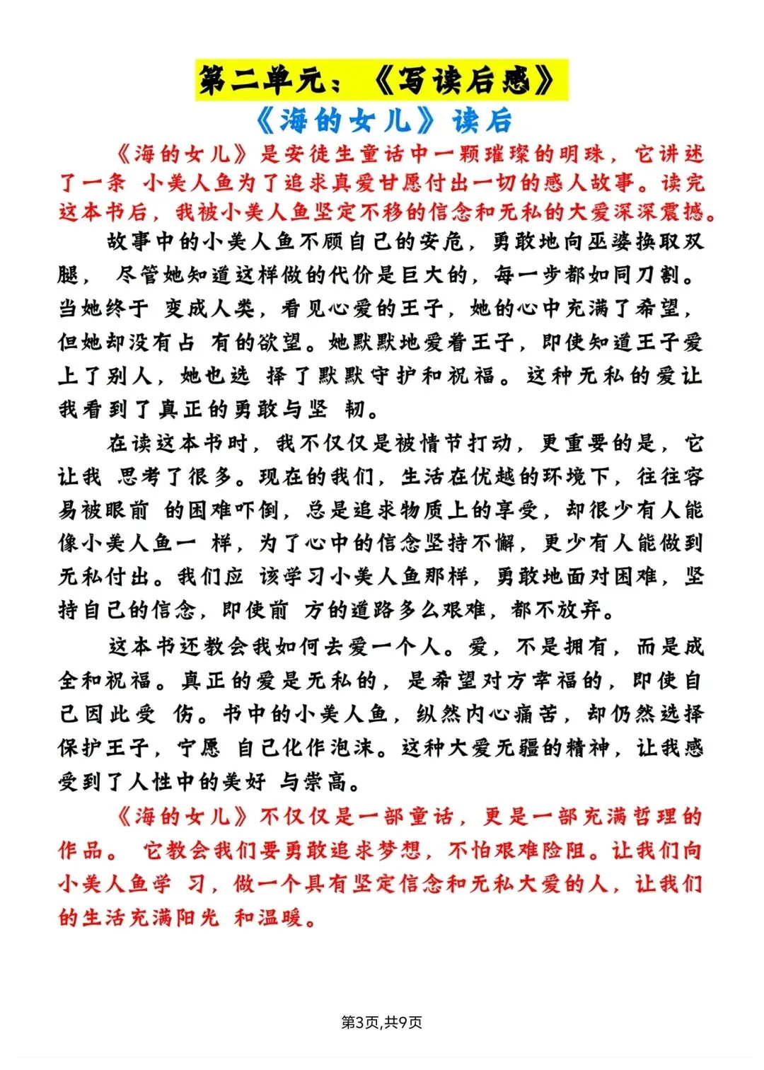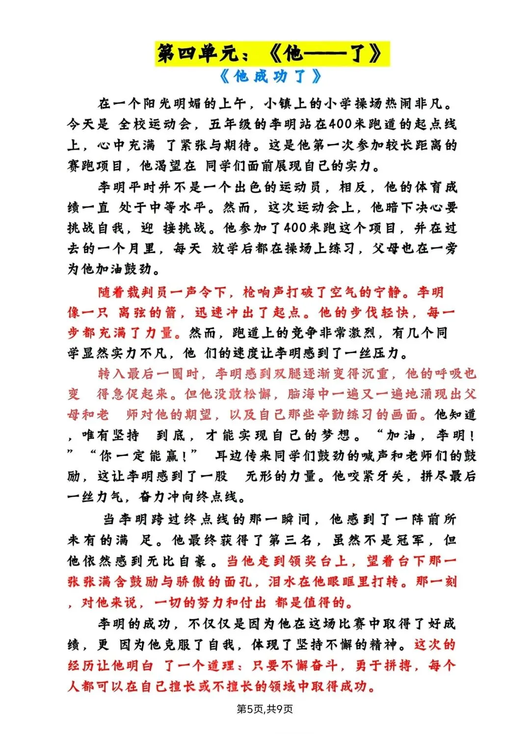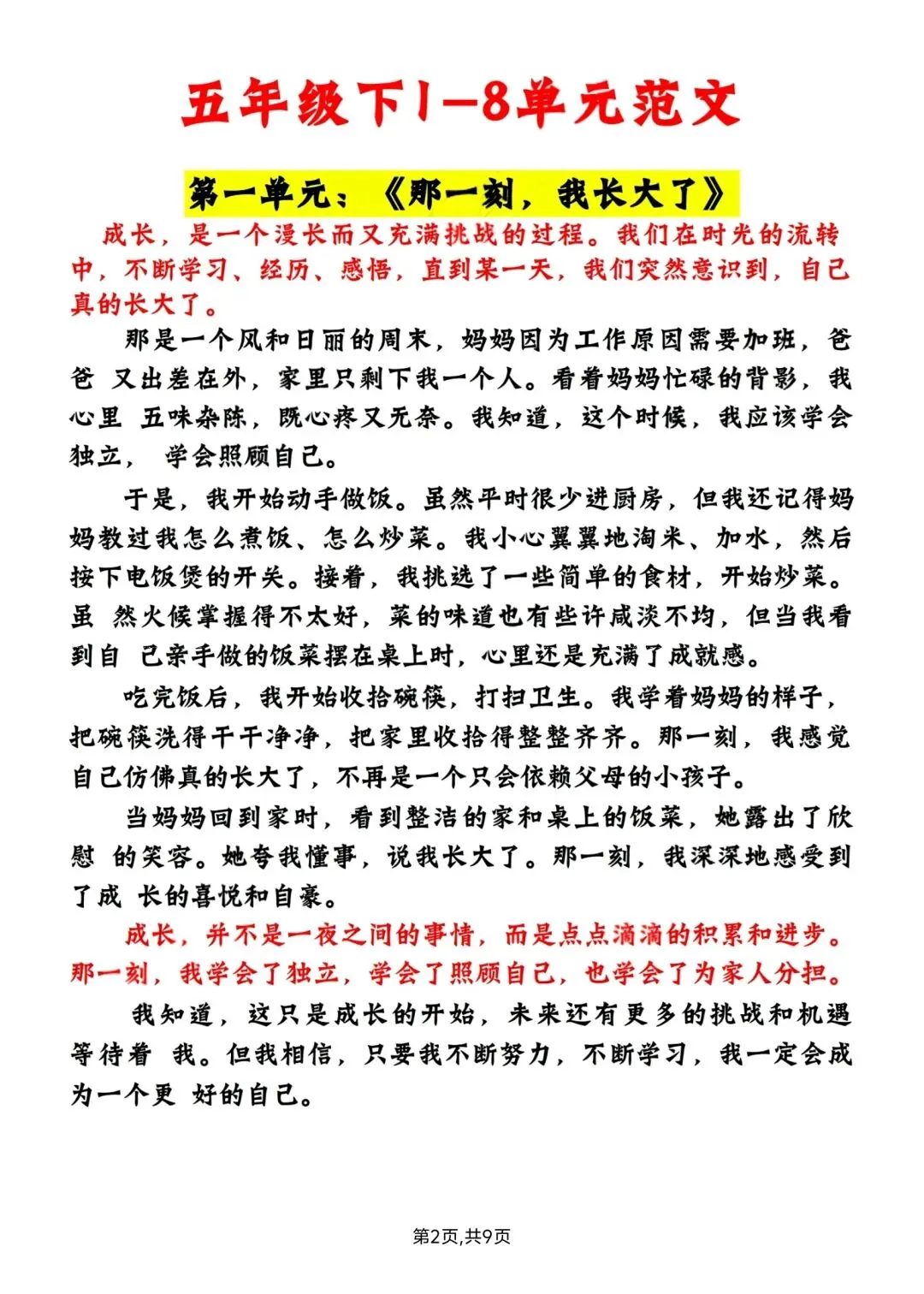 五年级下册语文1-8单元写作范文 高清电子版可打印