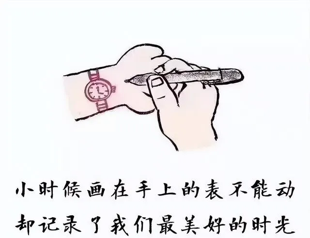 那个年代手表是稀罕物,有表的一般都是家里条件不错的同学。大多数孩子只能在手腕上画个表“过过瘾”。一支水笔“咔擦”一画,画完还用嘴吹一吹防止蹭花。即使不能走时,也足以成为同学间一整个炫耀和羡慕的话题。有时候老师还会调侃:“你们带的是什么表啊,怎么课间出去一圈又快五分钟!”现在想想,那种手绘“名表”的自信劲儿,是不是特别可爱?