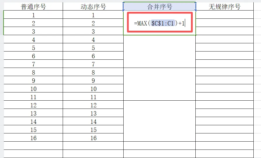 在含有合并单元格的表格中,直接拖动填充柄或使用常规ROW函数会导致序号错乱或无法填充。此时需要采用特殊公式MAX,实现合并单元格内序号的连续填充。