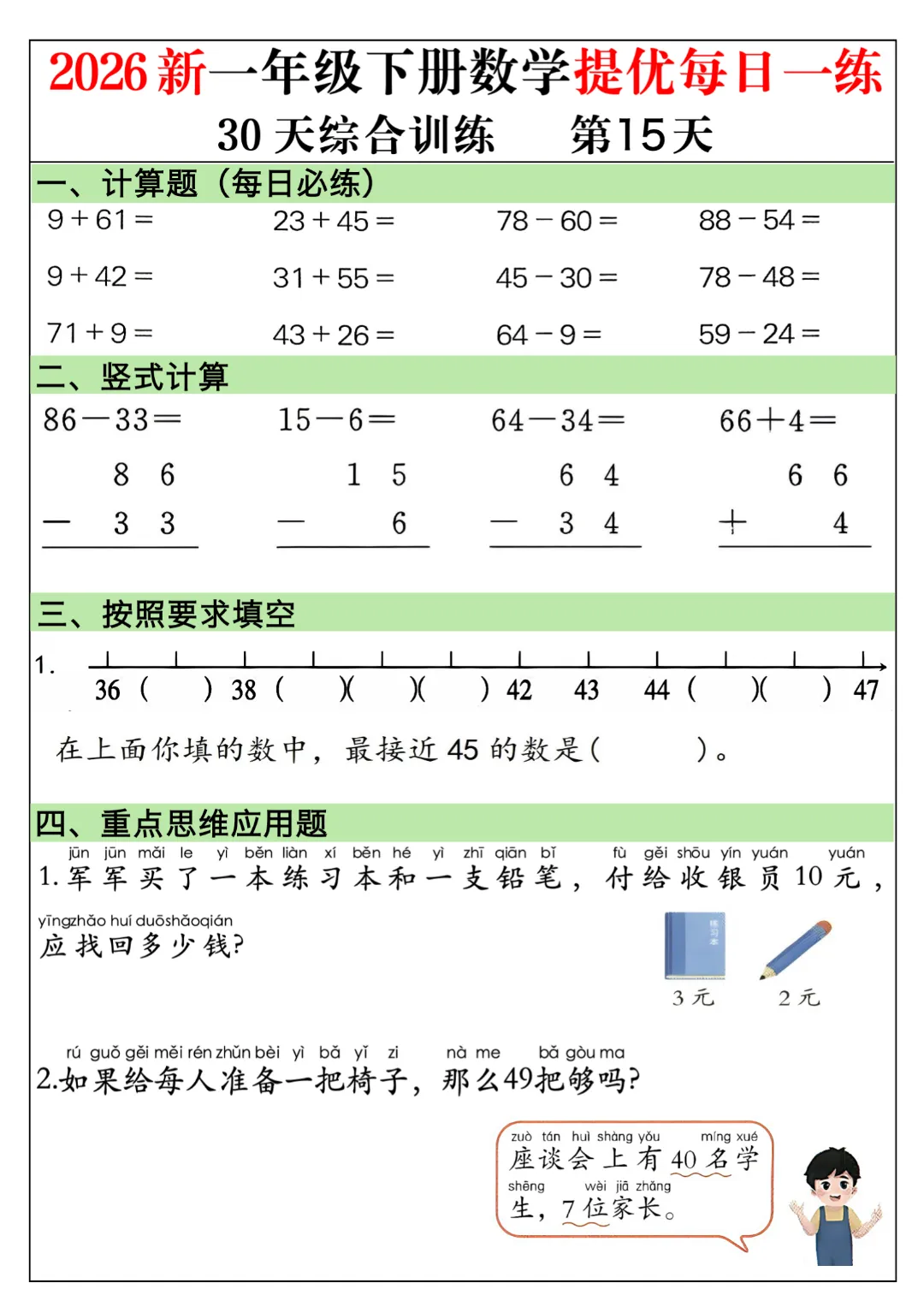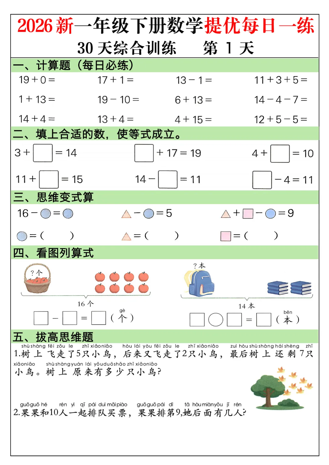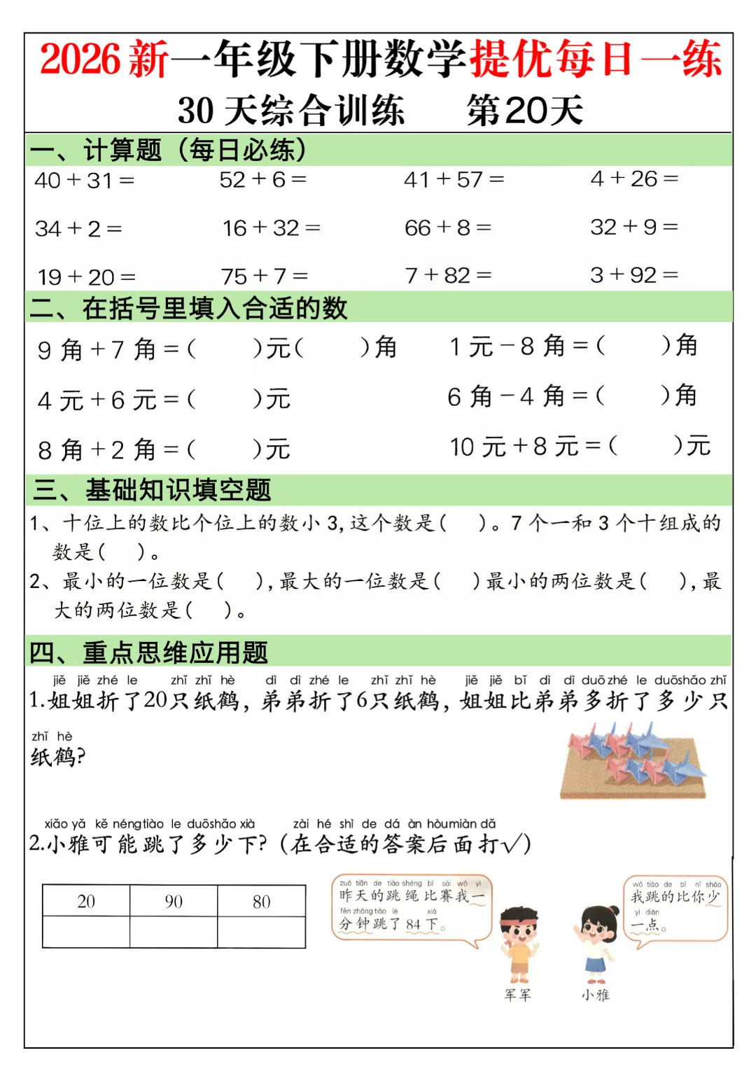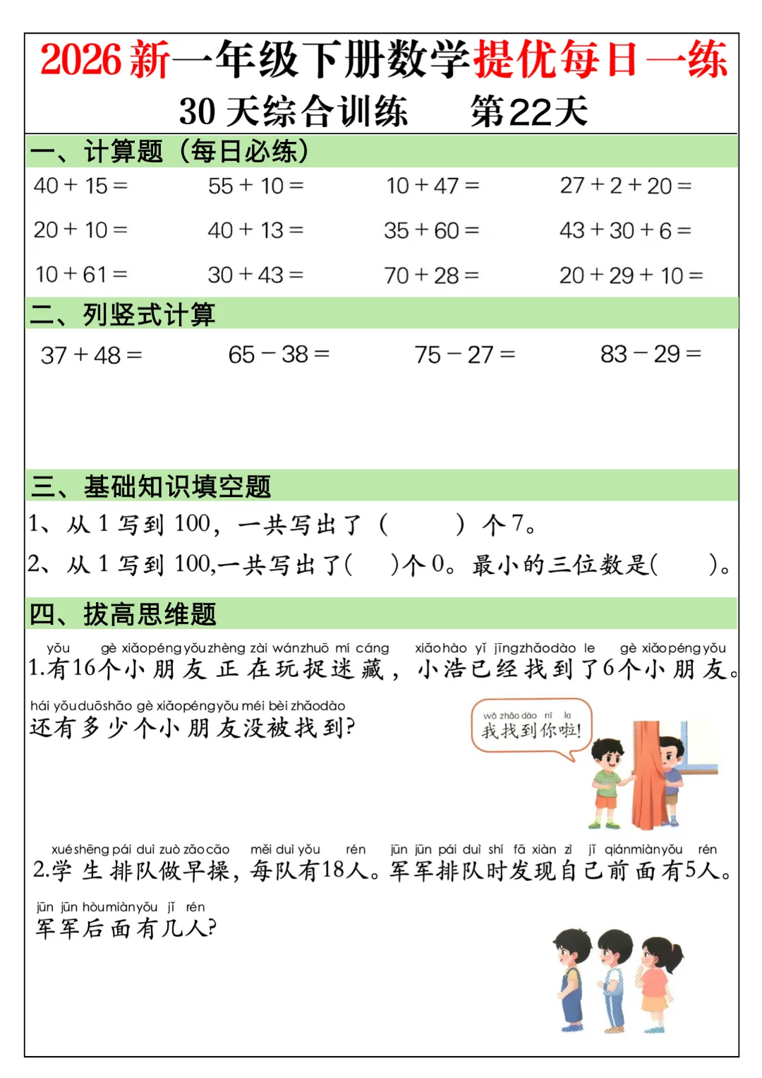 一年级下册数学通用版《30天提优训练每日一练》| 完整高清电子版可打印
