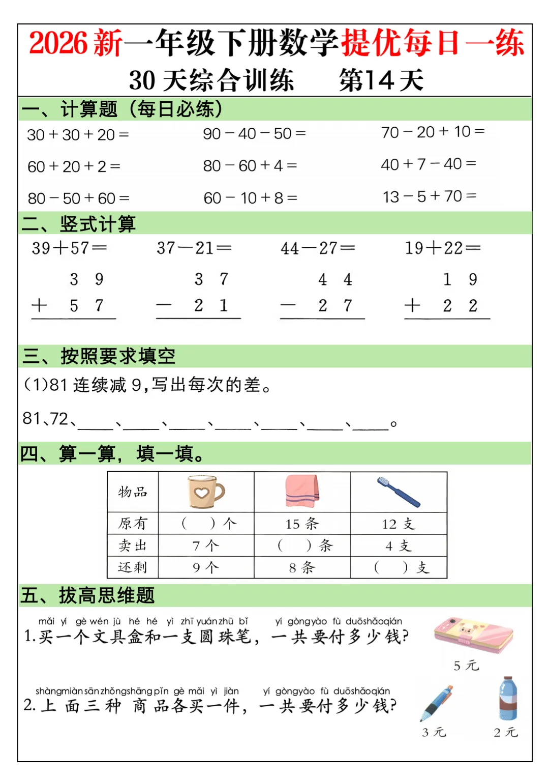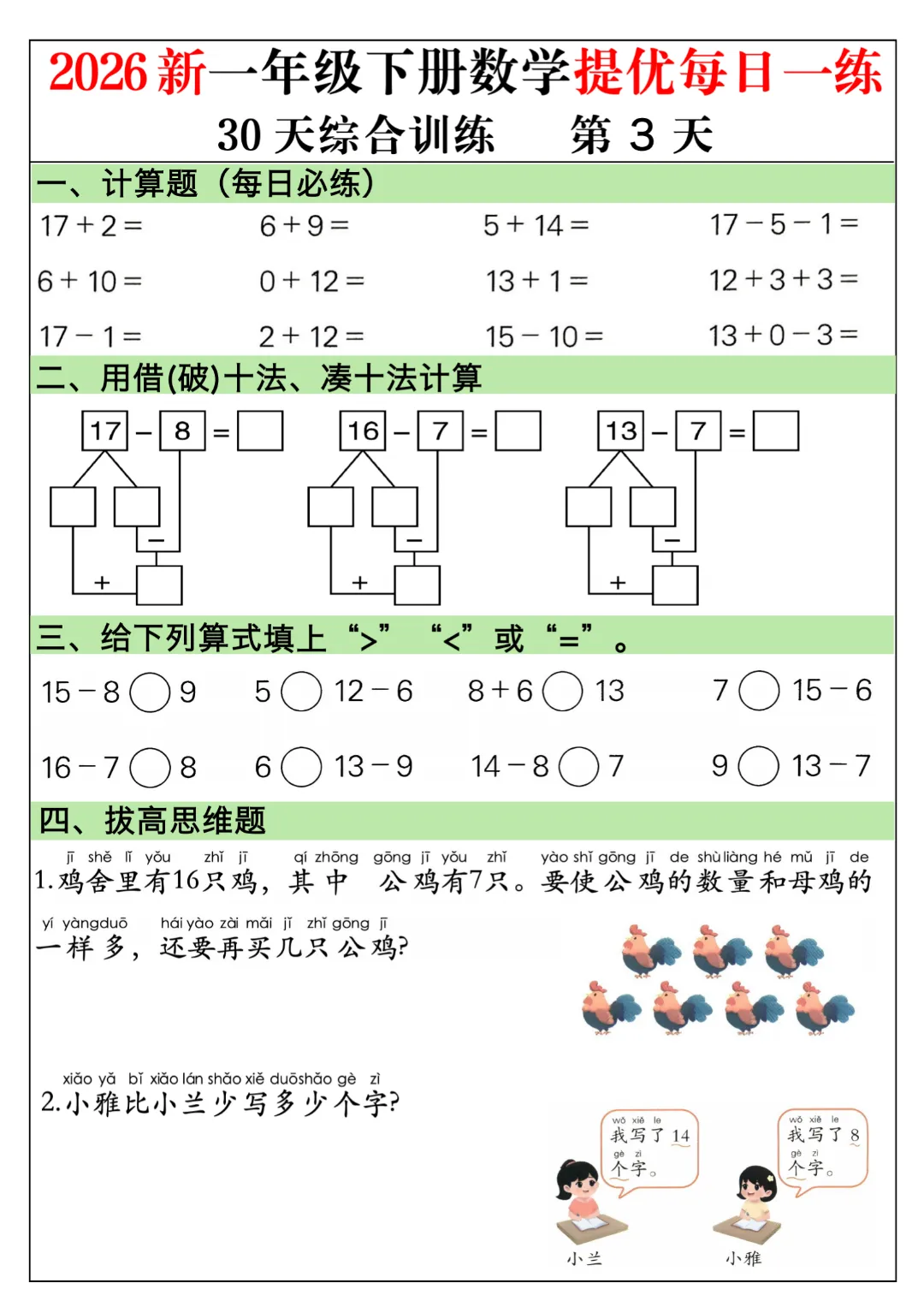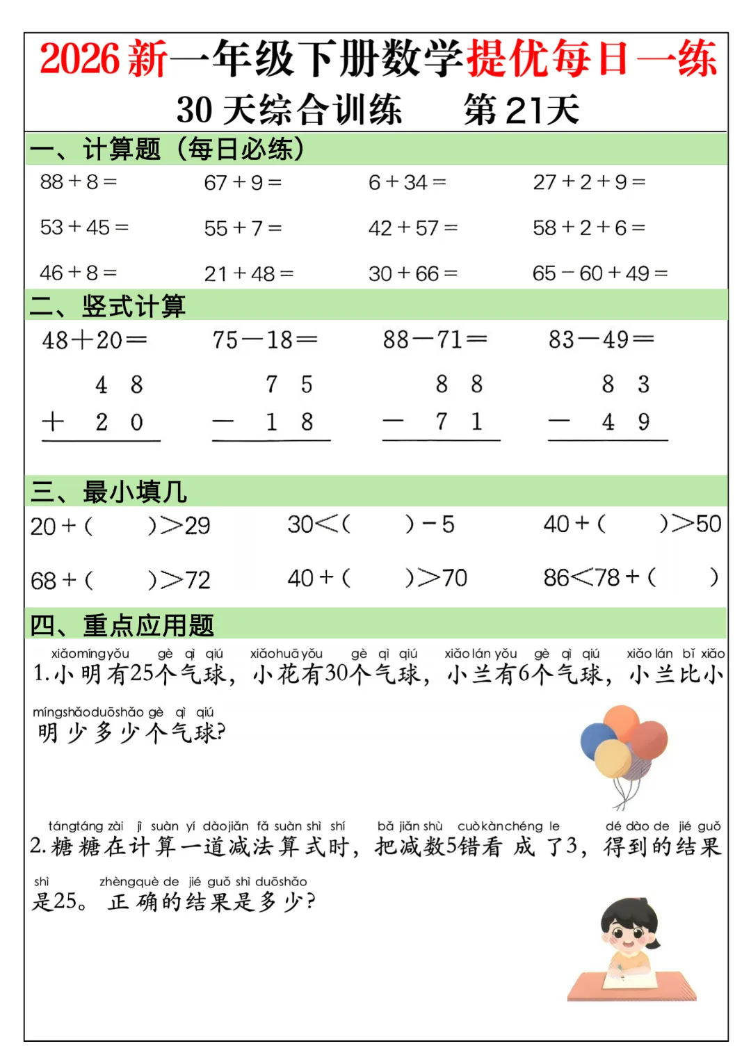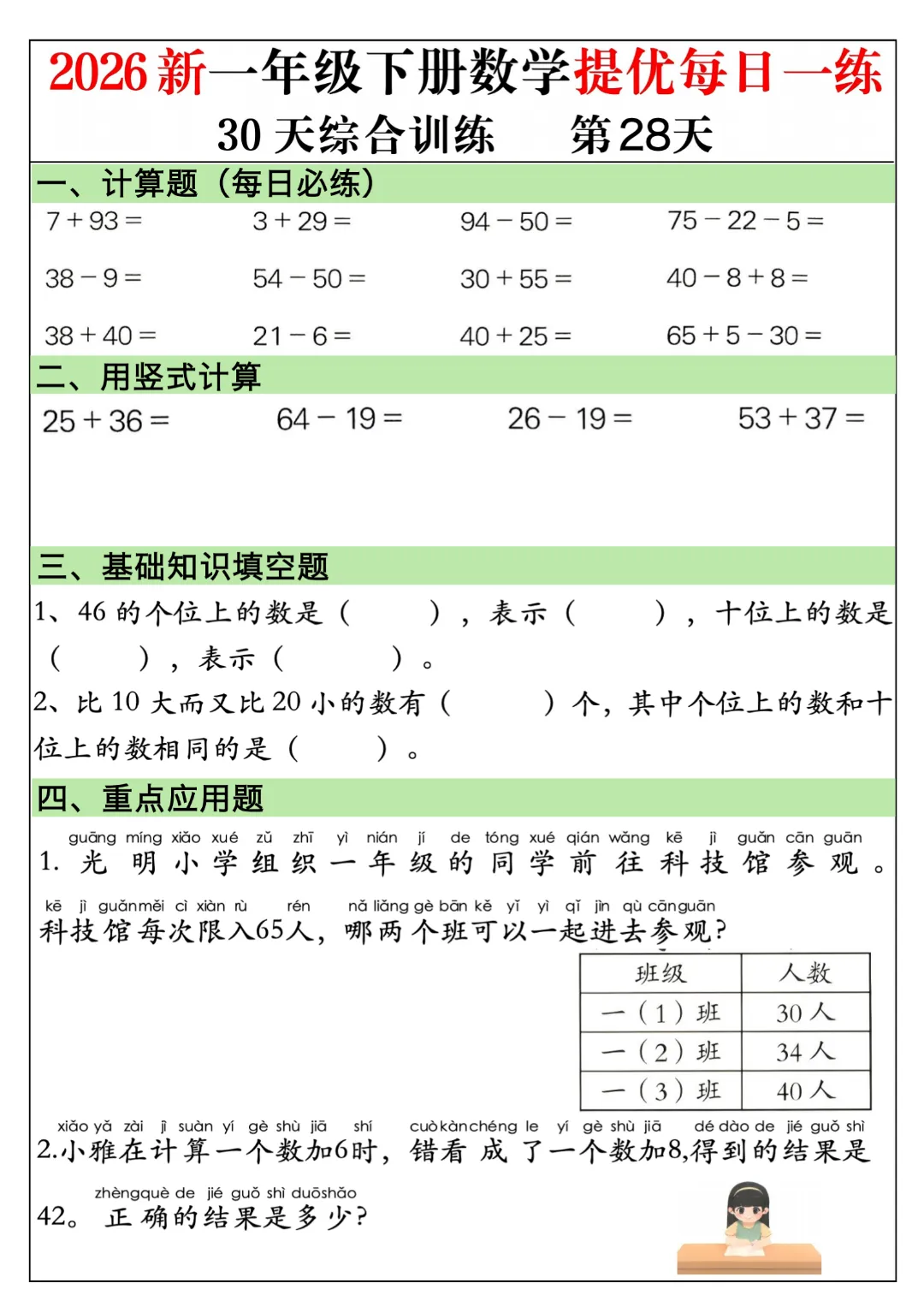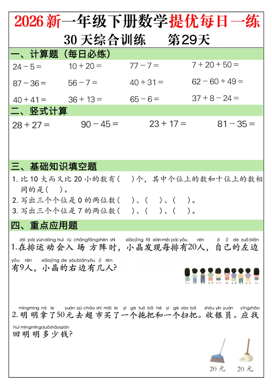 一年级下册数学通用版《30天提优训练每日一练》| 完整高清电子版可打印