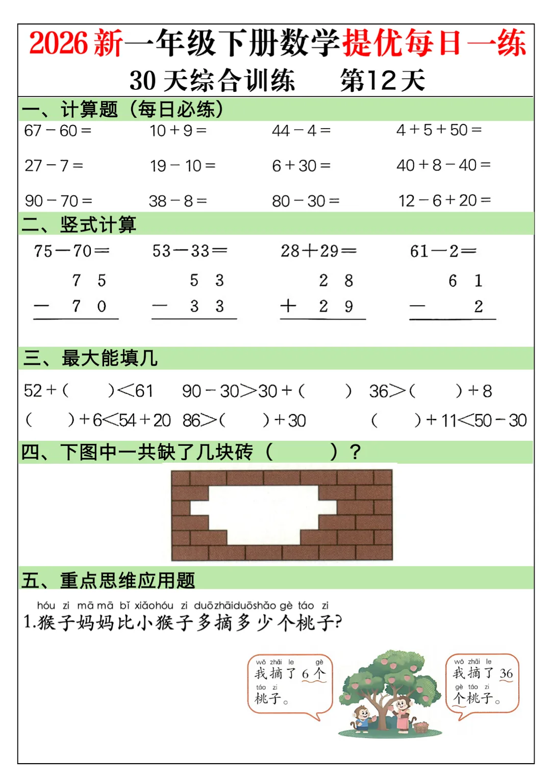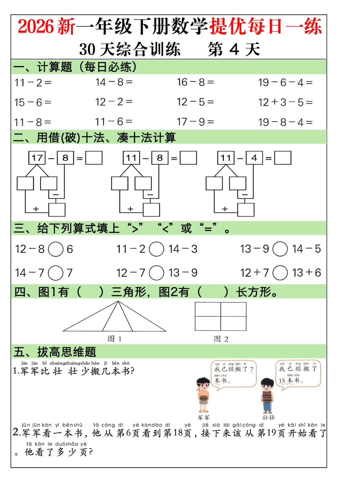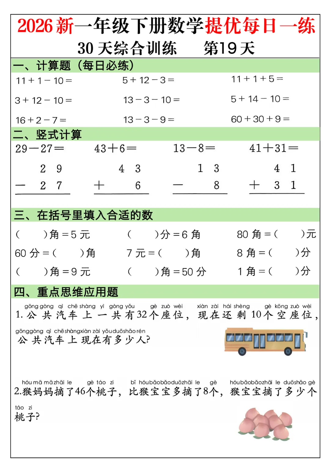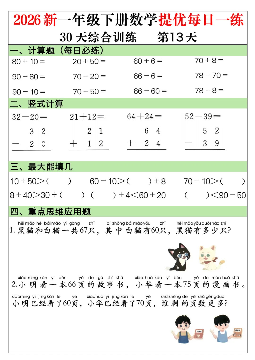 一年级下册数学通用版《30天提优训练每日一练》| 完整高清电子版可打印