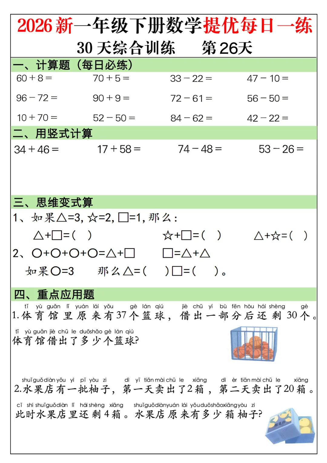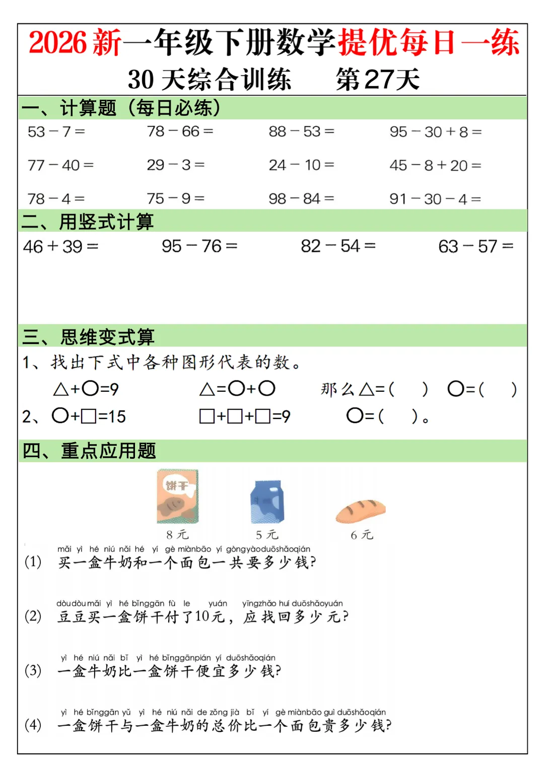 今天给家长们分享的是:一年级下册数学通用版《30天提优训练每日一练》| 完整高清电子版可打印