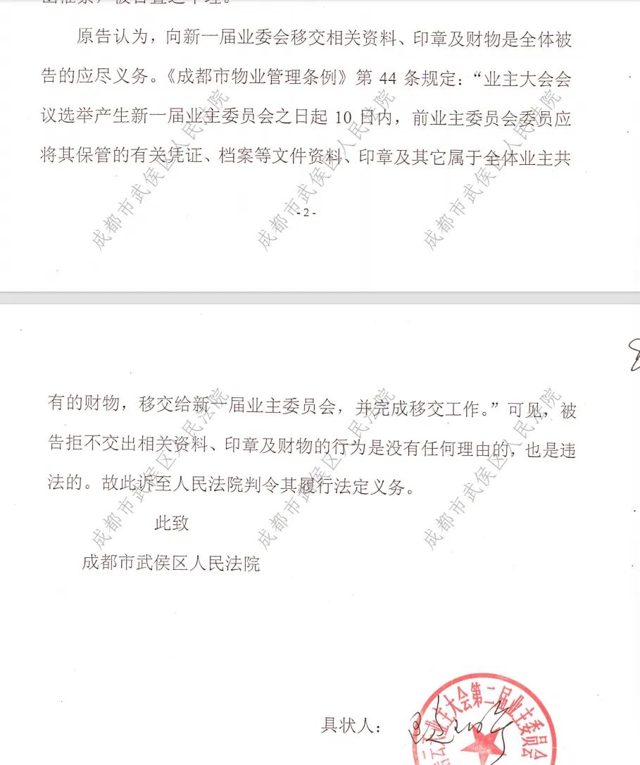 第二届业委会【民事诉讼】诉第一届业委会要求移交公章、财务、资金等 -