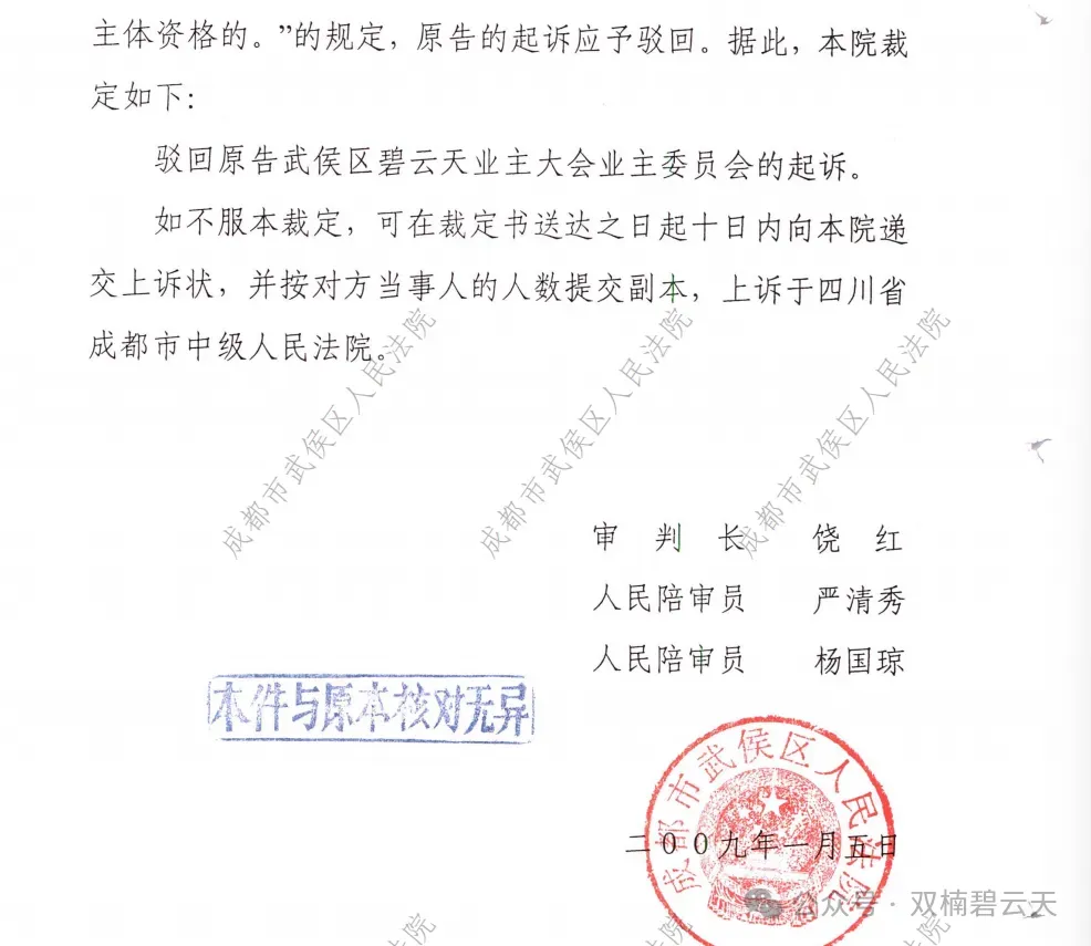 2、2009年1月,武侯区人民法院驳回起诉