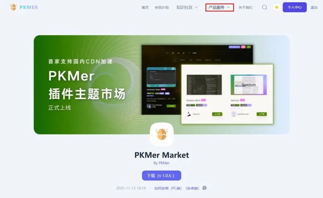 或者直接登录网址https://pkmer.cn/products/market/,点击下载。