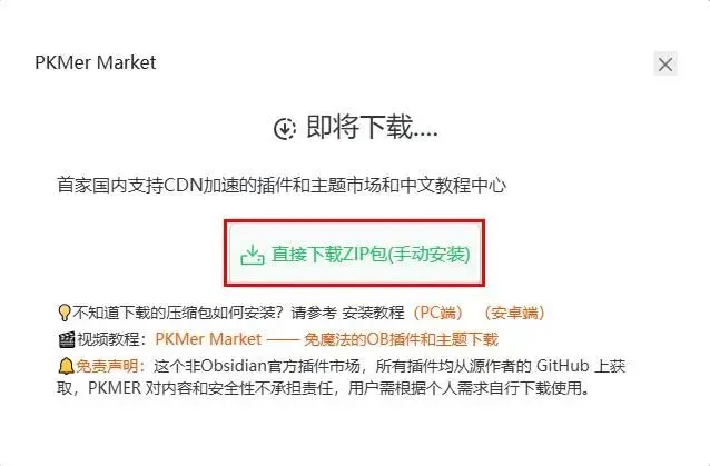 今天就来安利这款插件——当你在社区插件市场里找到的那款插件安装不了时,可以试试它:PKMer。这是一款很不错的国内插件,它把 Obsidian 所有的插件都做了处理。通过它来下载你需要的插件,会顺畅很多,因为它绕过了网络问题。
