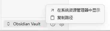 点击Obsidian左下角的Obsidian Vault,右键单击,会出现如下画面:
