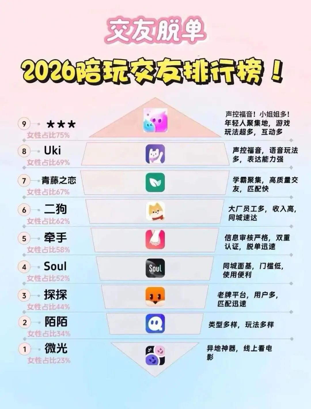 希望大家不要对使用交友软件和对交友软件有偏见,当今社会节奏太快,年轻人很难有机会有精力去参加各种线下社交活动,去认识新的朋友,各种交友软件提供了一个平台方便大家去认识不同的人。那么闲言少叙让小编为大家介绍不同的交友软件。