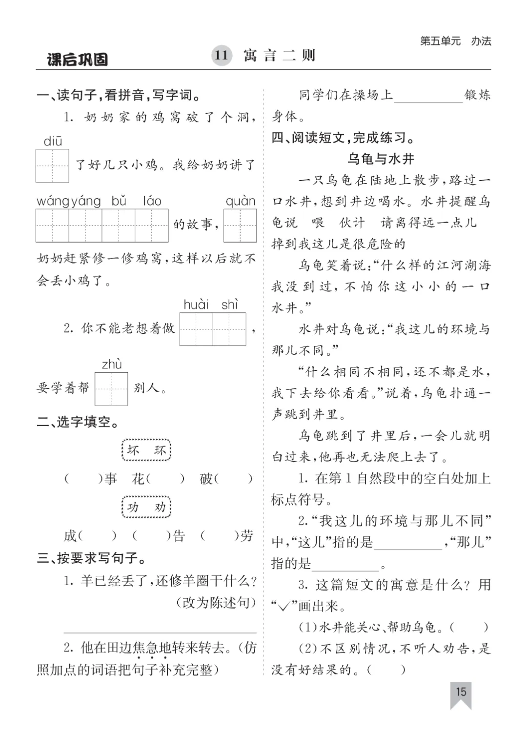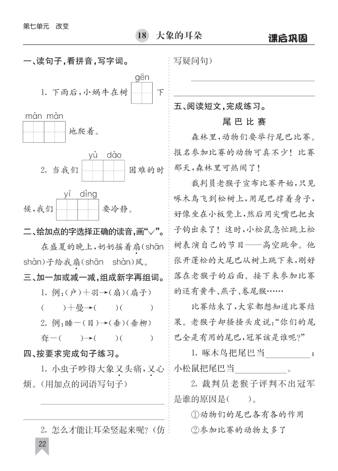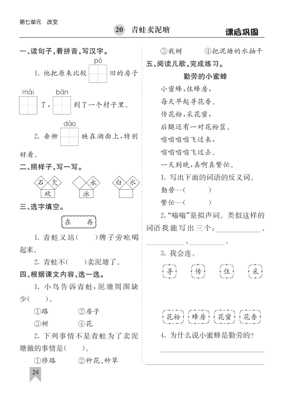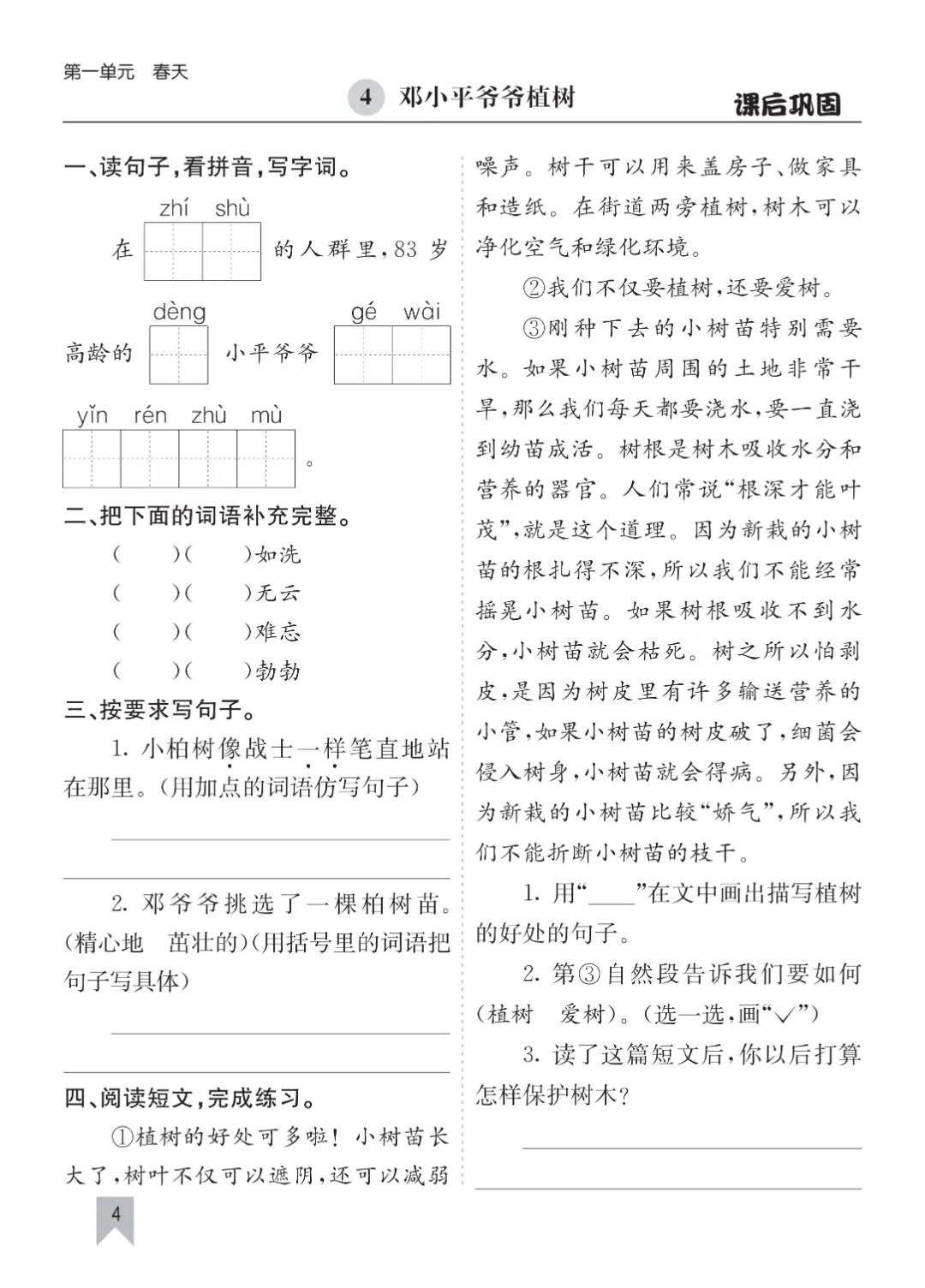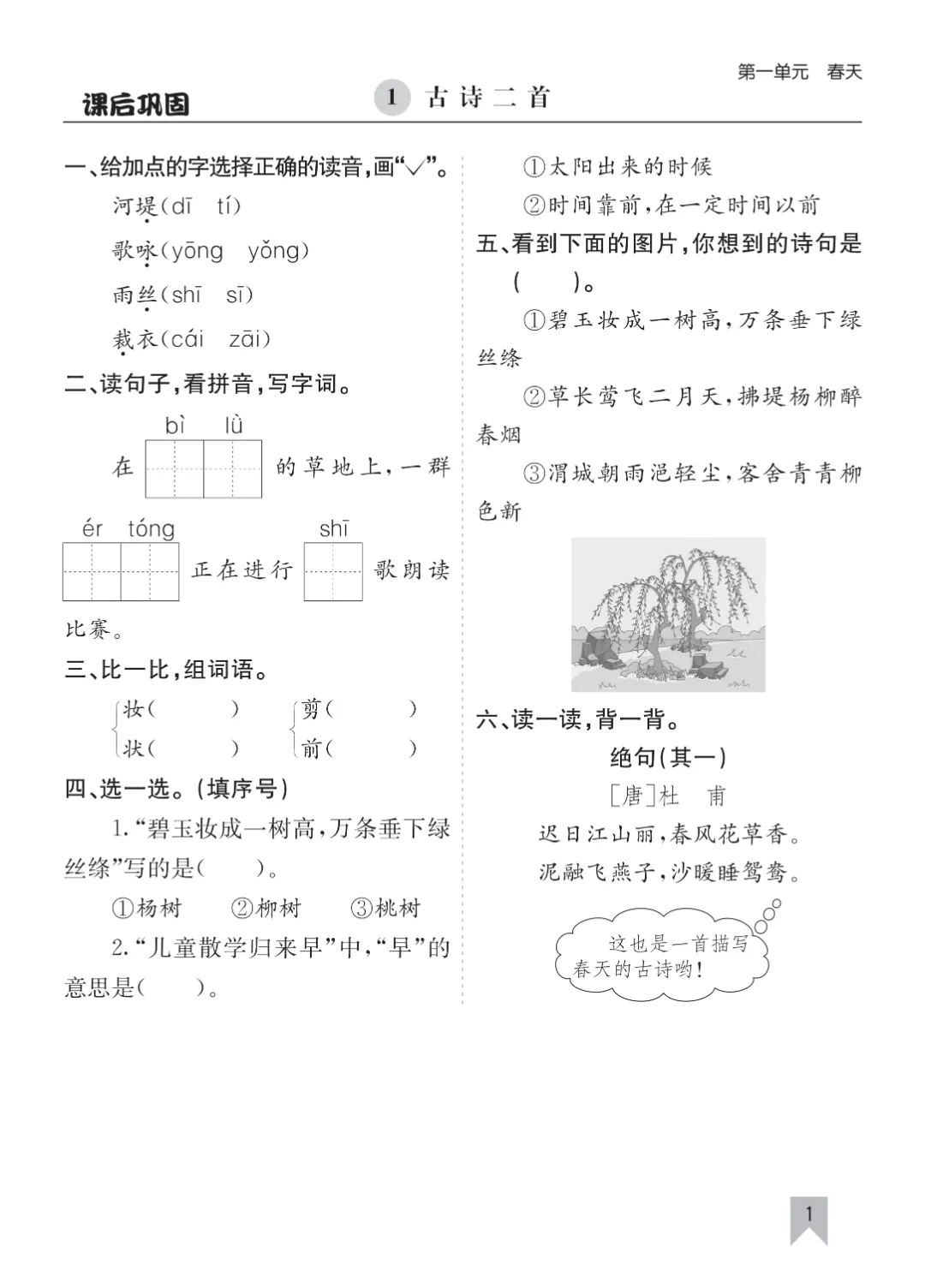 今天给大家分享的是:【二年级下册语文】【通用版】一课一练课后巩固练习带答案|完整高清电子版可打印