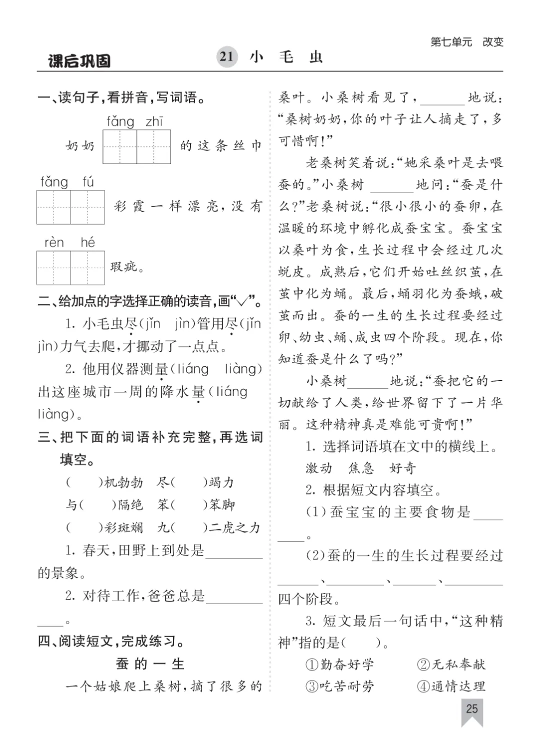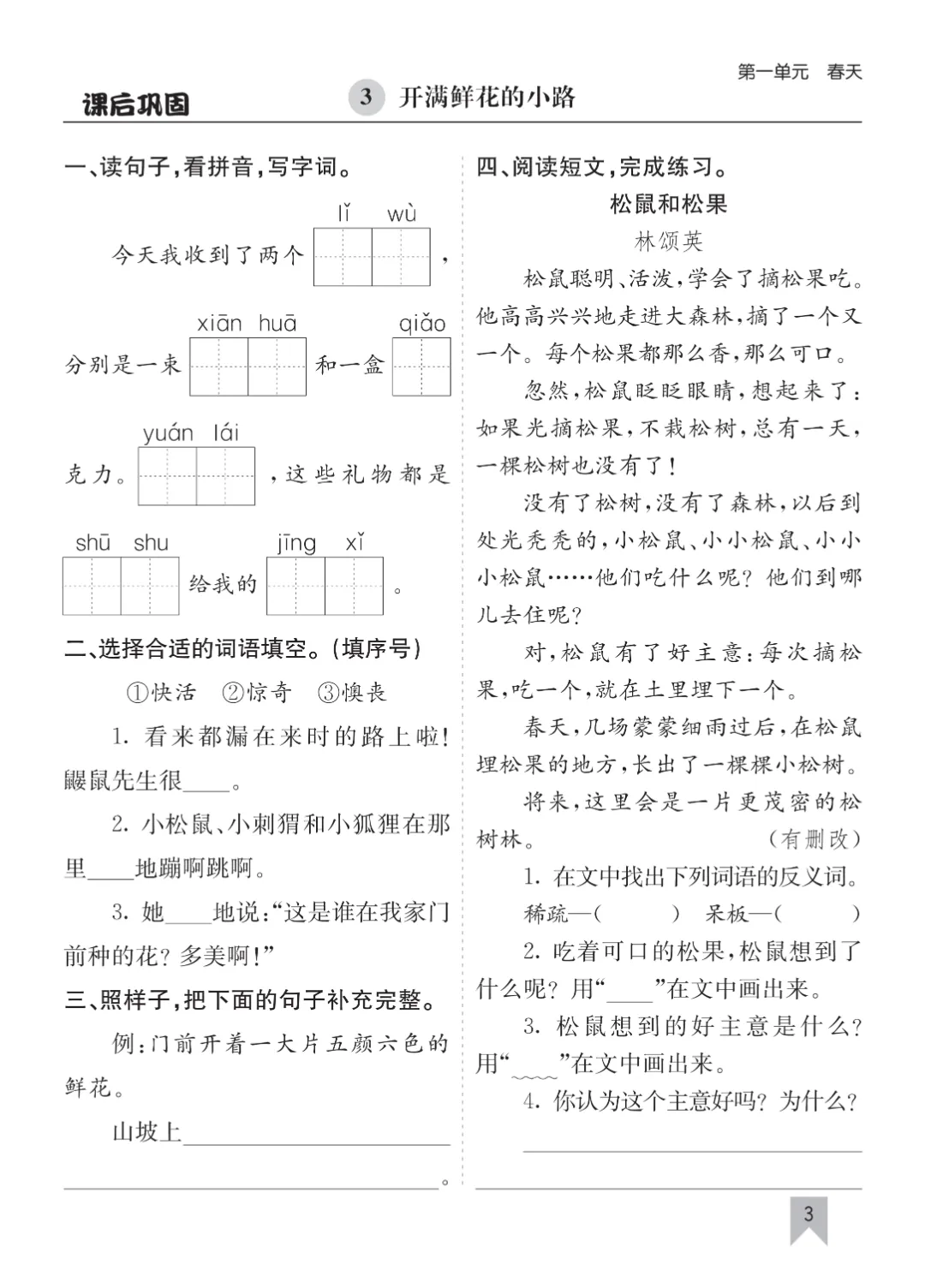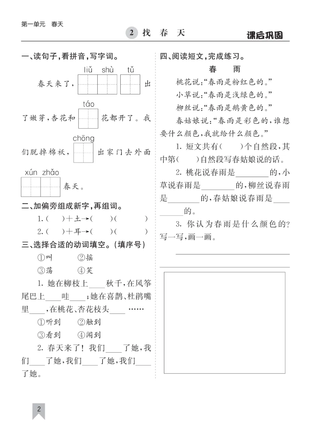 【二年级下册语文】【通用版】一课一练课后巩固练习带答案|完整高清可打印
