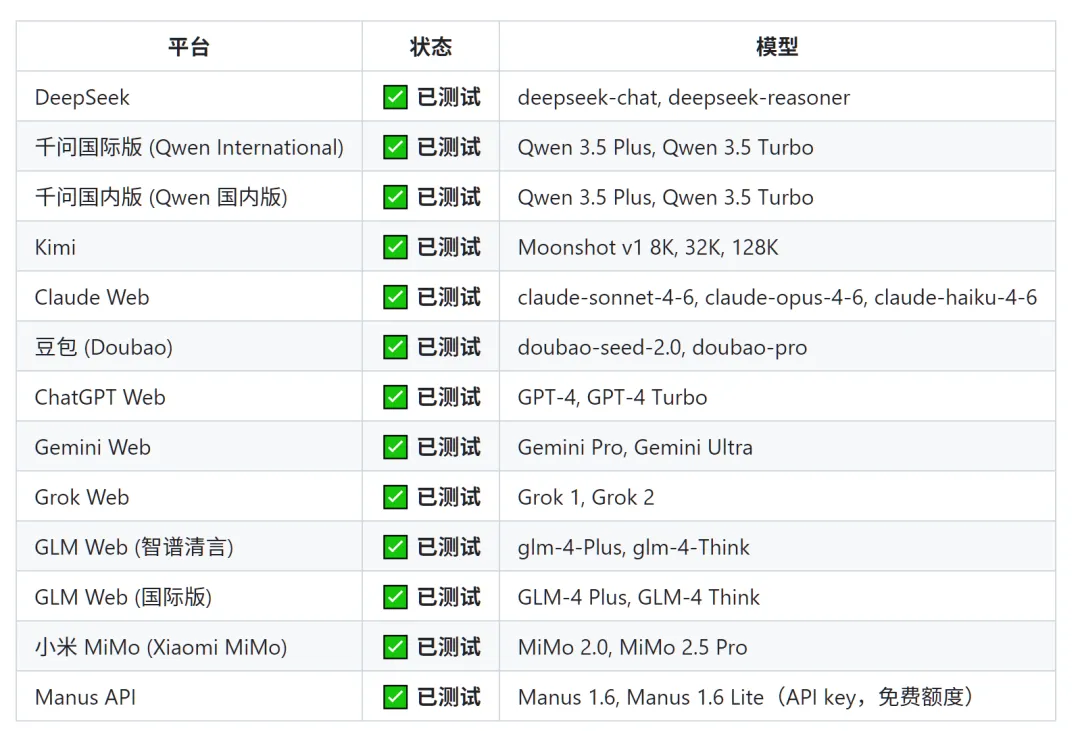 现在各个模型大厂,在 web 页面访问模型是免费,这个项目就用浏览器自动化技术,模拟你在网页端登录,用web平台的接口,完全绕过了收费 API 机制。目前支持了12个 AI 大厂。