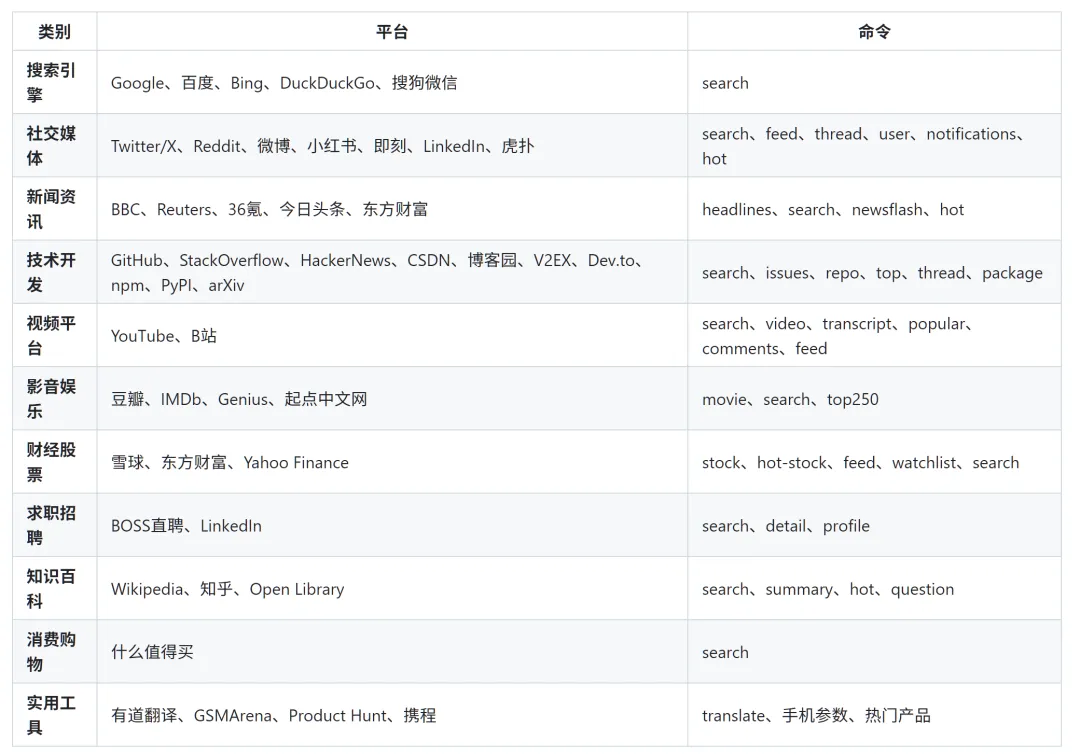 最厉害的是,它的适配器是相当于一个插件系统,一个插件就是一个JS文件,你的目标网站不在适配器里,直接 Claude Code 打开写一个。