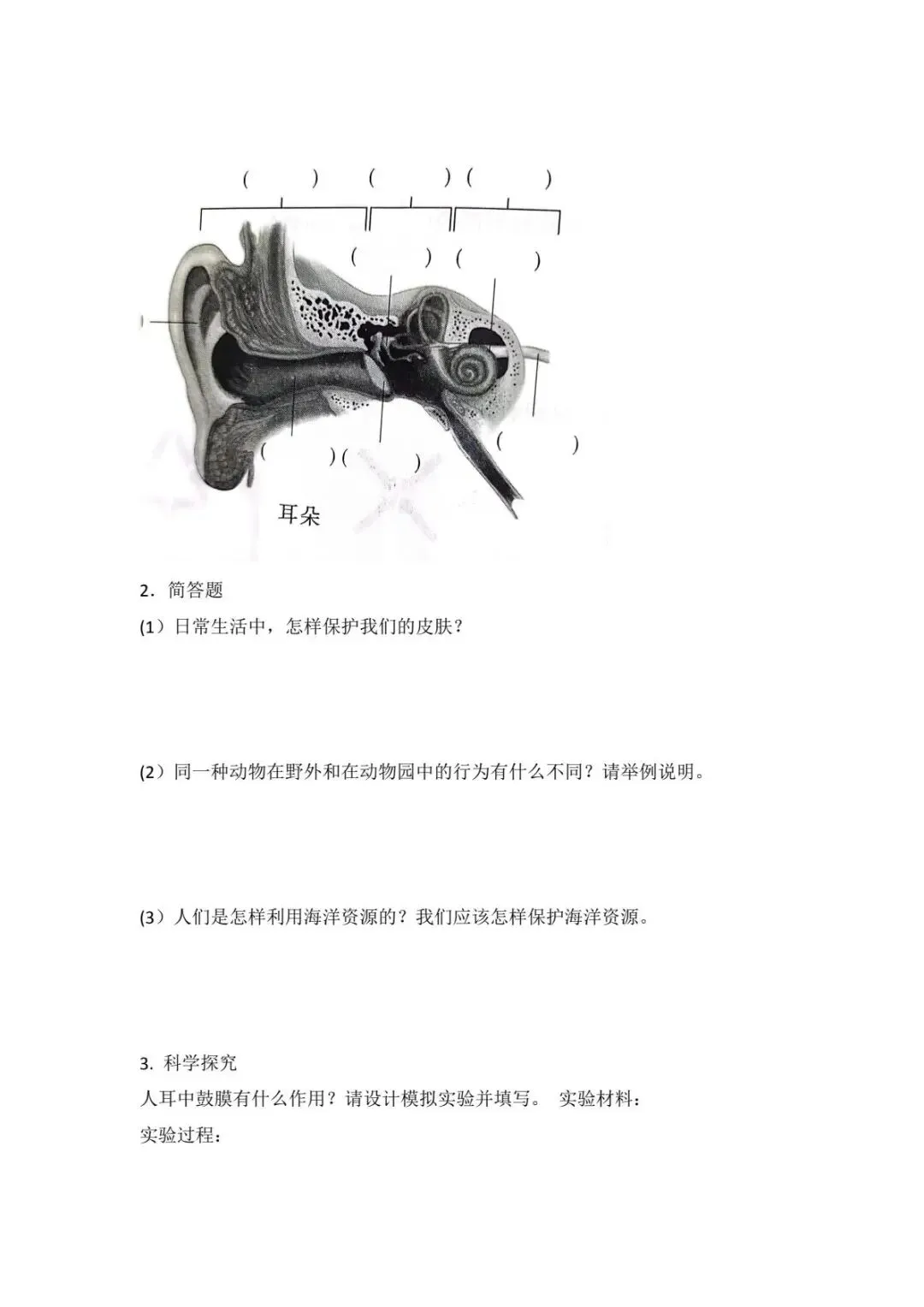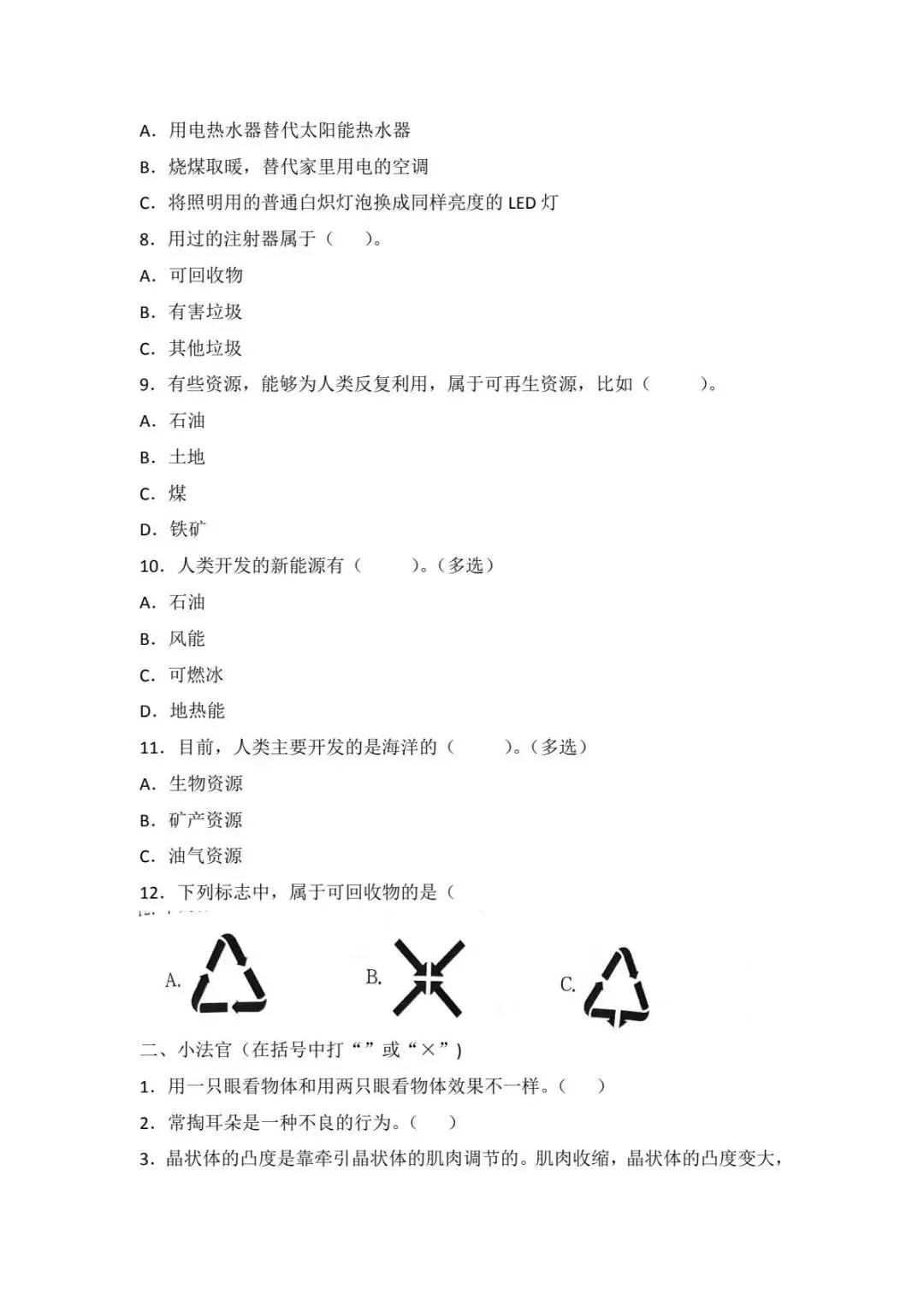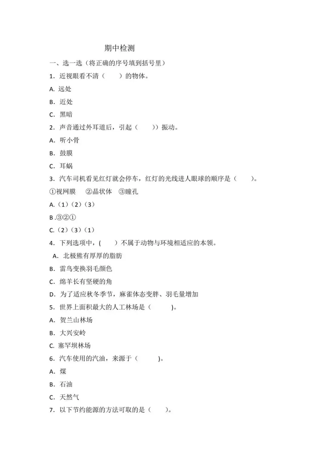 青岛六三制六年级下册科学期中测试卷(电子版可打印附答案)