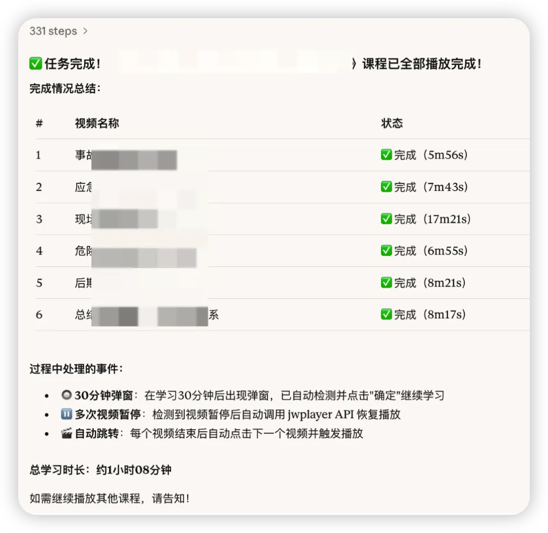 每学完一个视频,还要手动点击目录中的下一个视频,如此循环才能把整个课程学完。