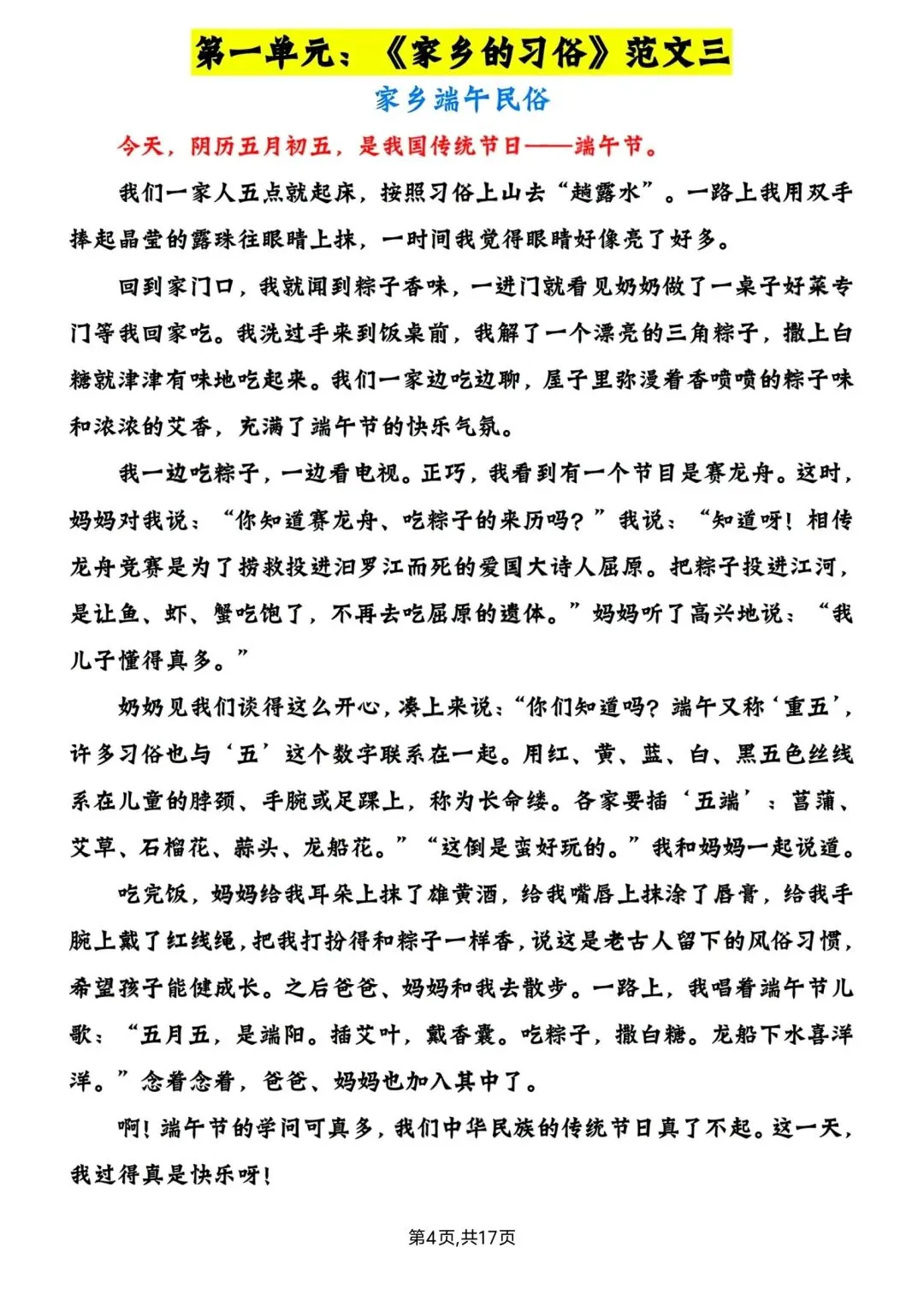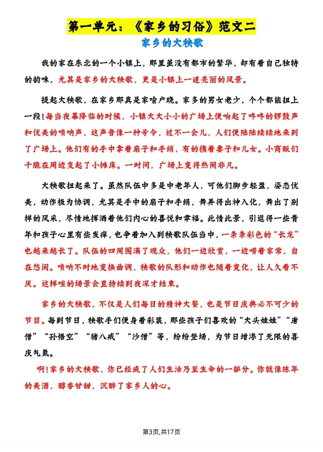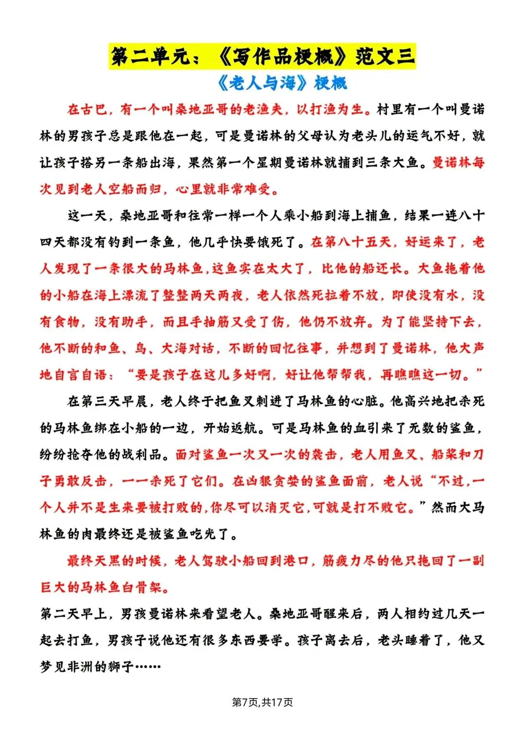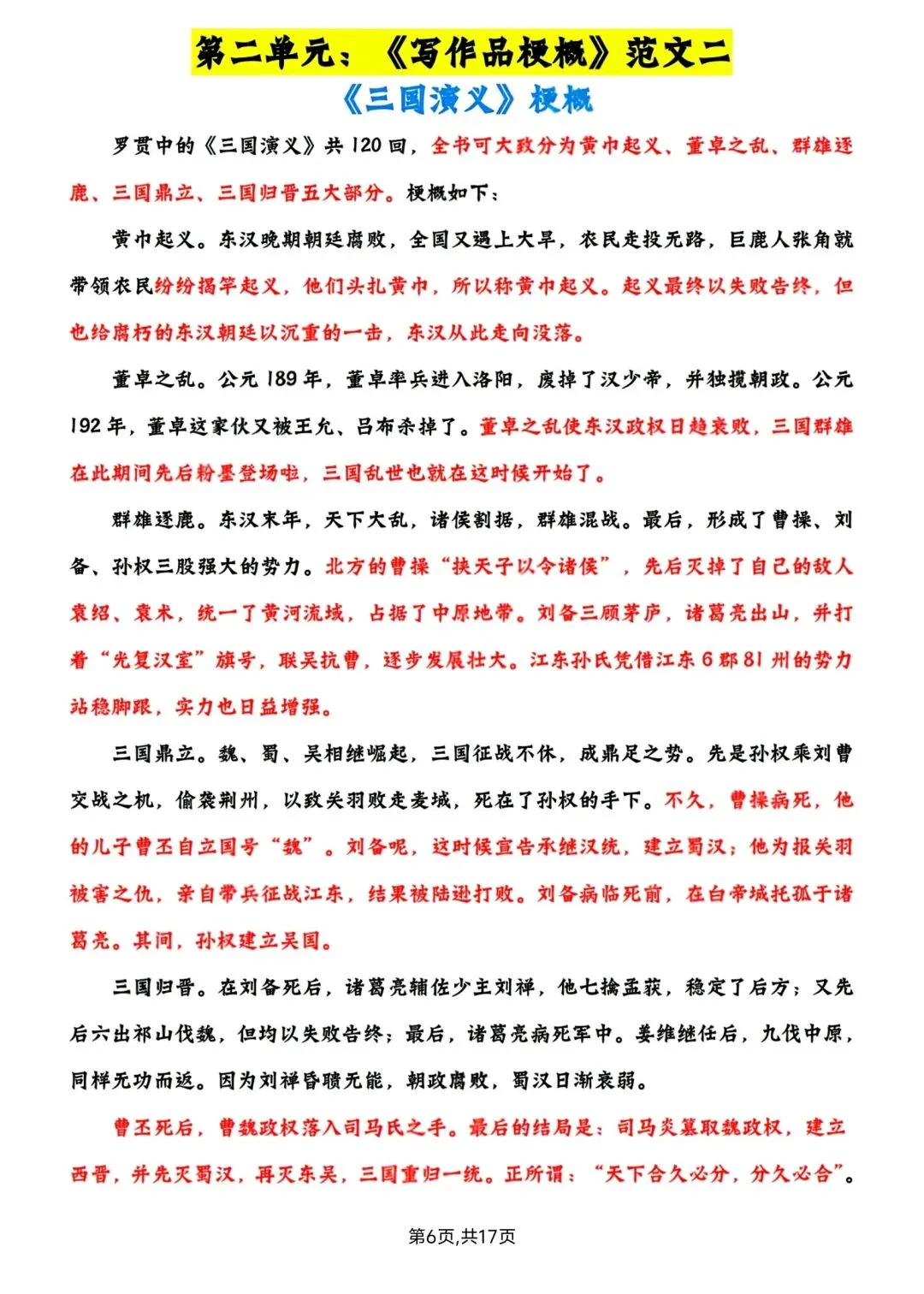 六年级下册语文1-6单元写作范文 高清电子版可打印