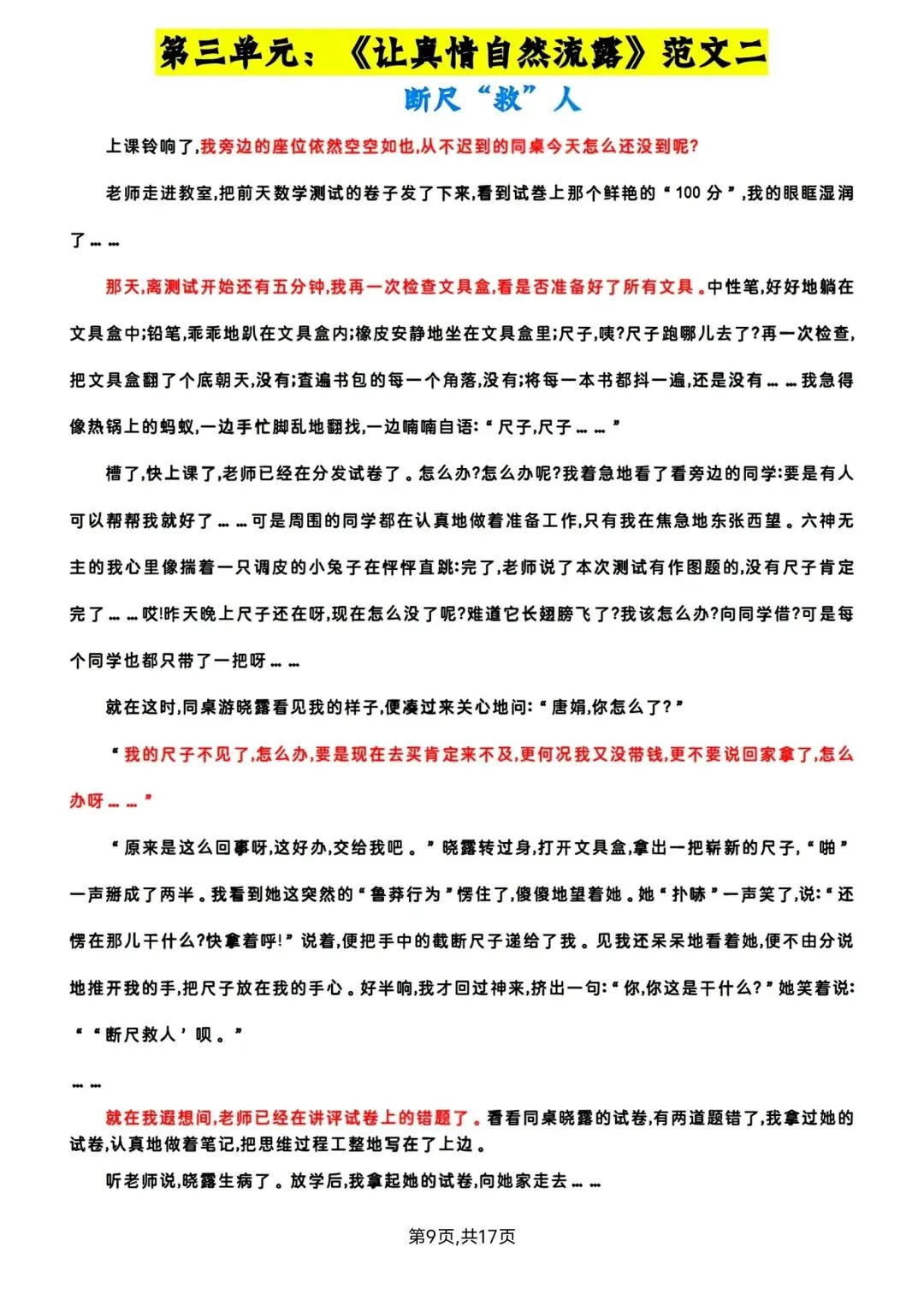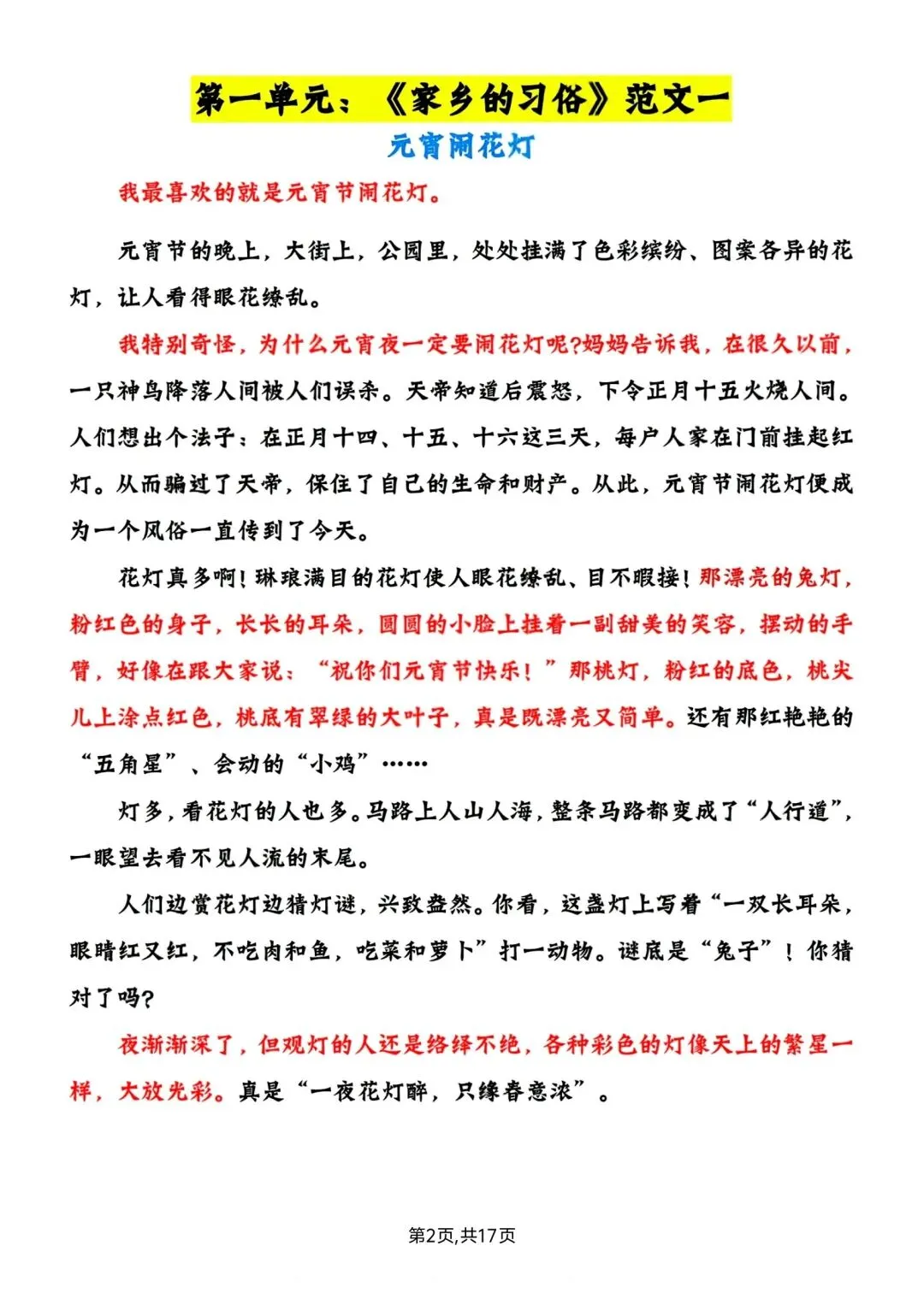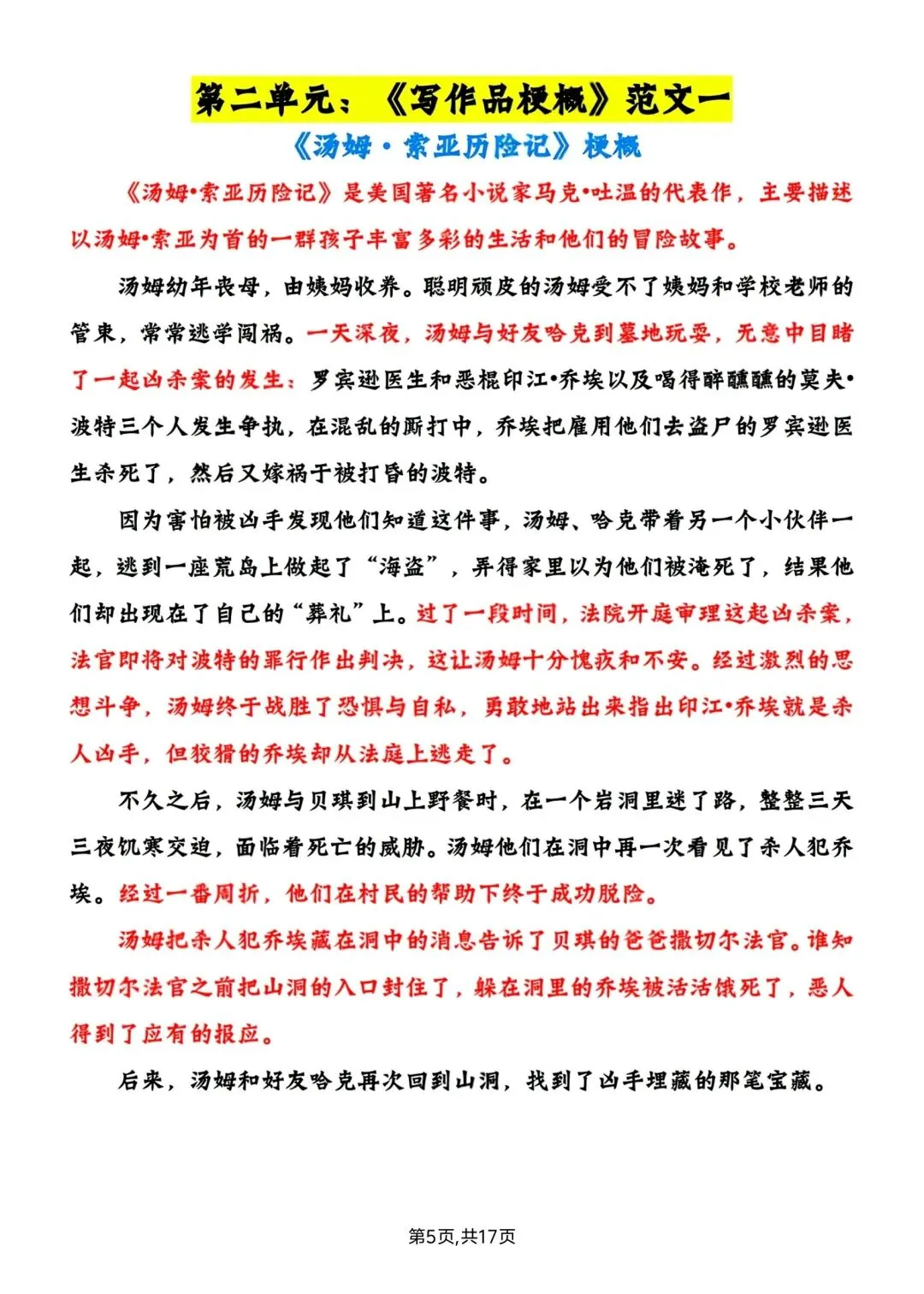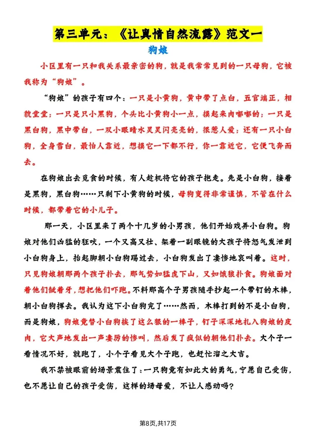 六年级下册语文1-6单元写作范文 高清电子版可打印