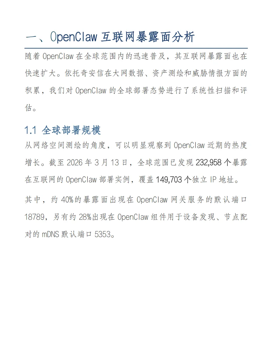 报告扫描发现,截至2026年3月,全球有超过23.2万个OpenClaw实例直接暴露在互联网上。更可怕的是,其中近9%存在已知安全漏洞。你的AI助手,可能正在“门户大开”!