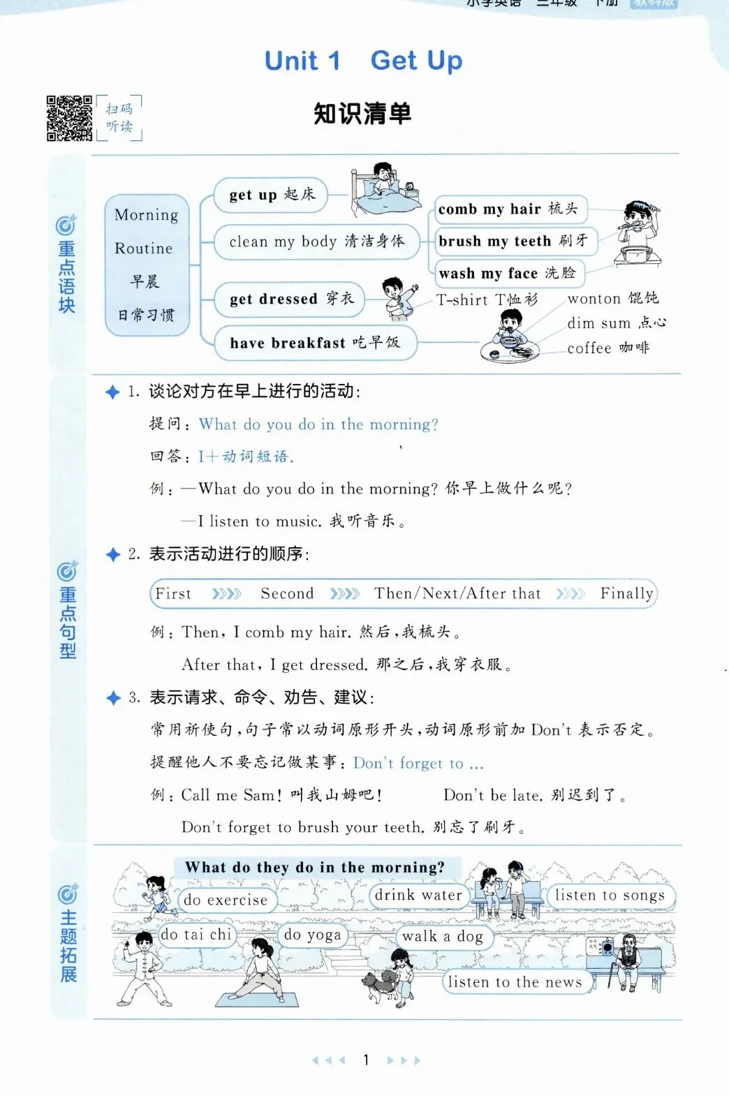 广州教科版英语三年级下册单元知识点清单,电子版可下载打印参考