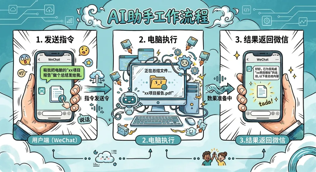 ⚠️ 有时会卡 – 任务中突然卡住,只能手动停止任务 ⚠️ 微信有限制 – 只能在手机发消息,不能电脑端 ⚠️ 能力有上限 – 整理文件可以,完全替代人工还差点 |