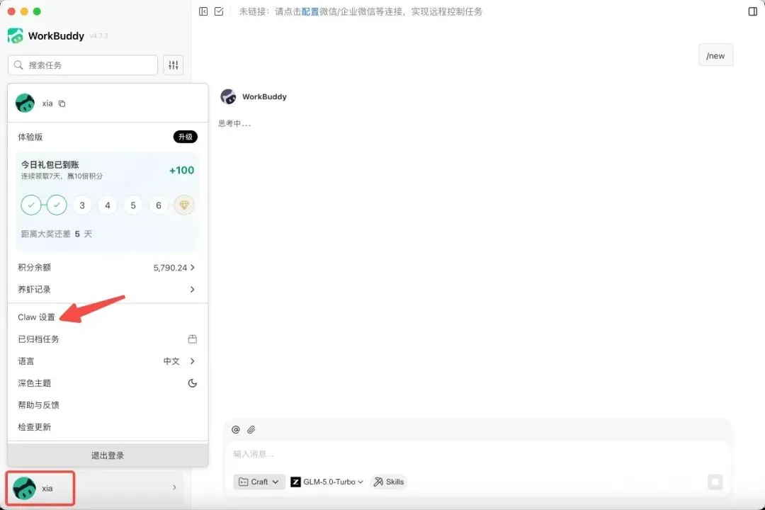 2. 打开设置 – 点齿轮图标,进Claw设置