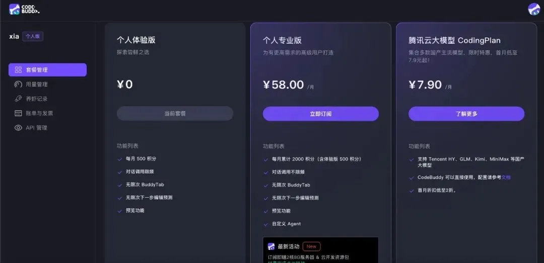 5500积分能用多久? 基础问答基本够用,每天登录还可以再领100积分。送的积分目前够用,用完了还可以升级包月,也可以自己配置coding plan,非常自由。 |