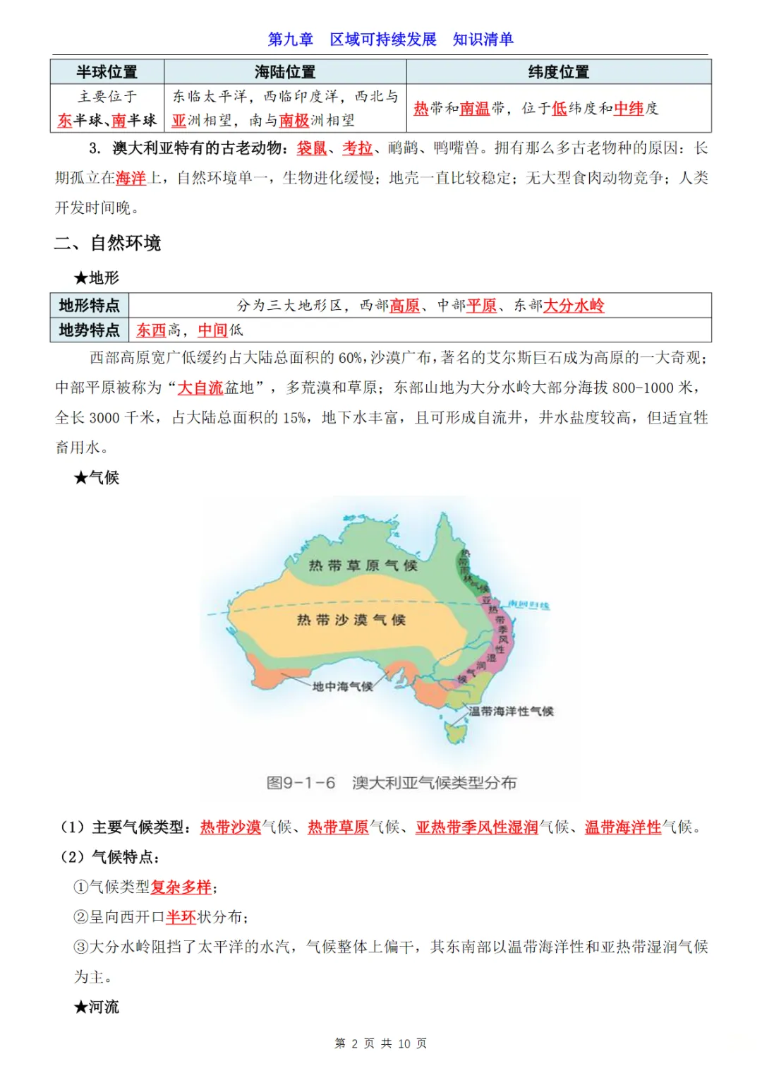 【免费下载】七年级(下)地理第9章区域可持续发展 知识清单(粤教版),PDF电子版,可打印,共10页,先保存,以免资源失效