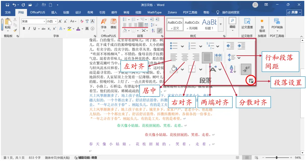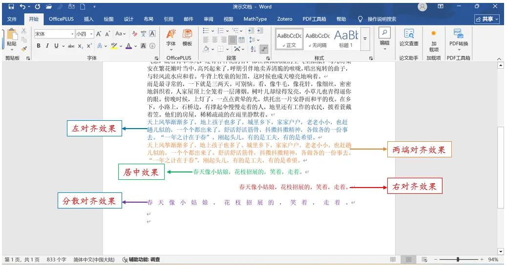 图 2 段落对齐设置展示效果