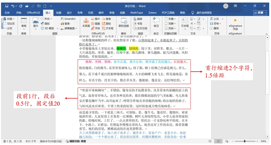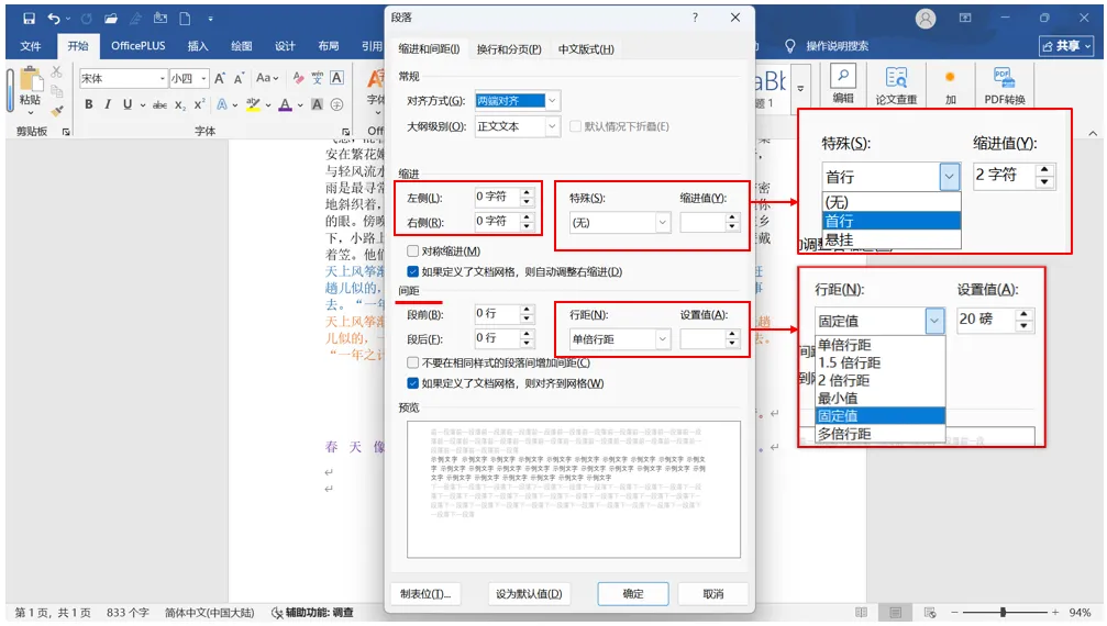 段前段后空行:打开“段落”弹窗→在“间距”下方修改“段前”或者“段后”空行值,最后“确定”完成设置即可(图6),效果展示见图7。
