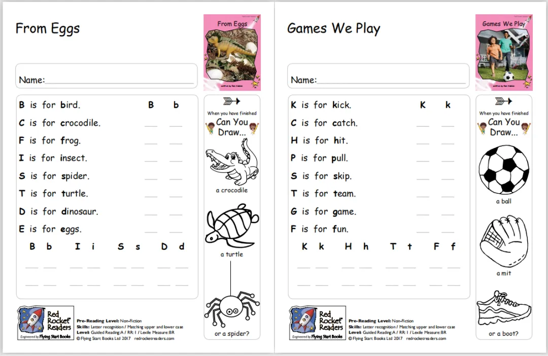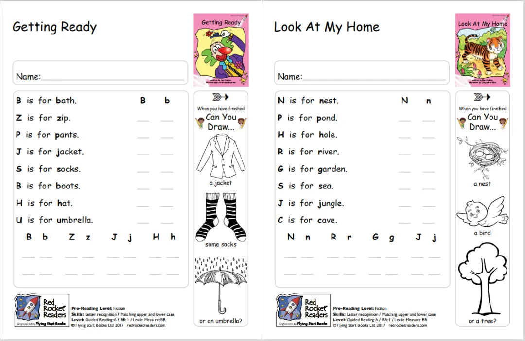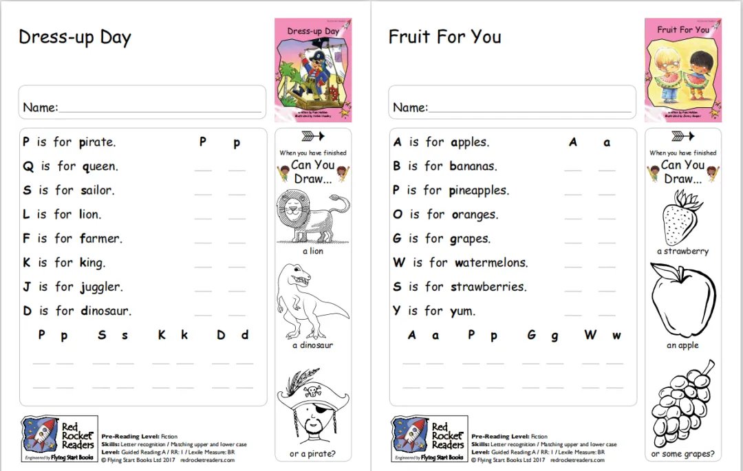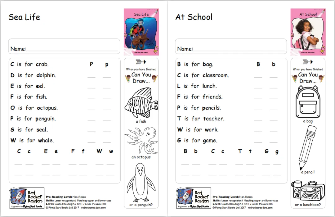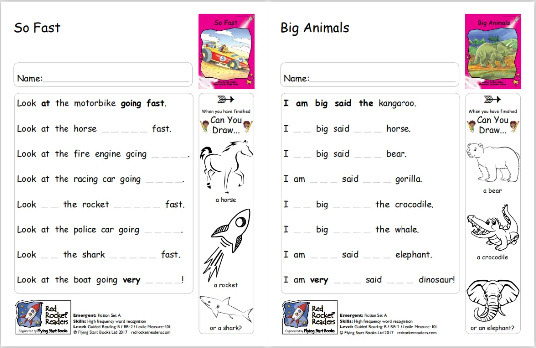 红火箭分级阅读系列从大写字母开始,从每页上只有一个词、两个词,到每页上有一句话、两句话,移动图册这种难度渐进设计,很适合非母语国家的孩子用来学习英语。
