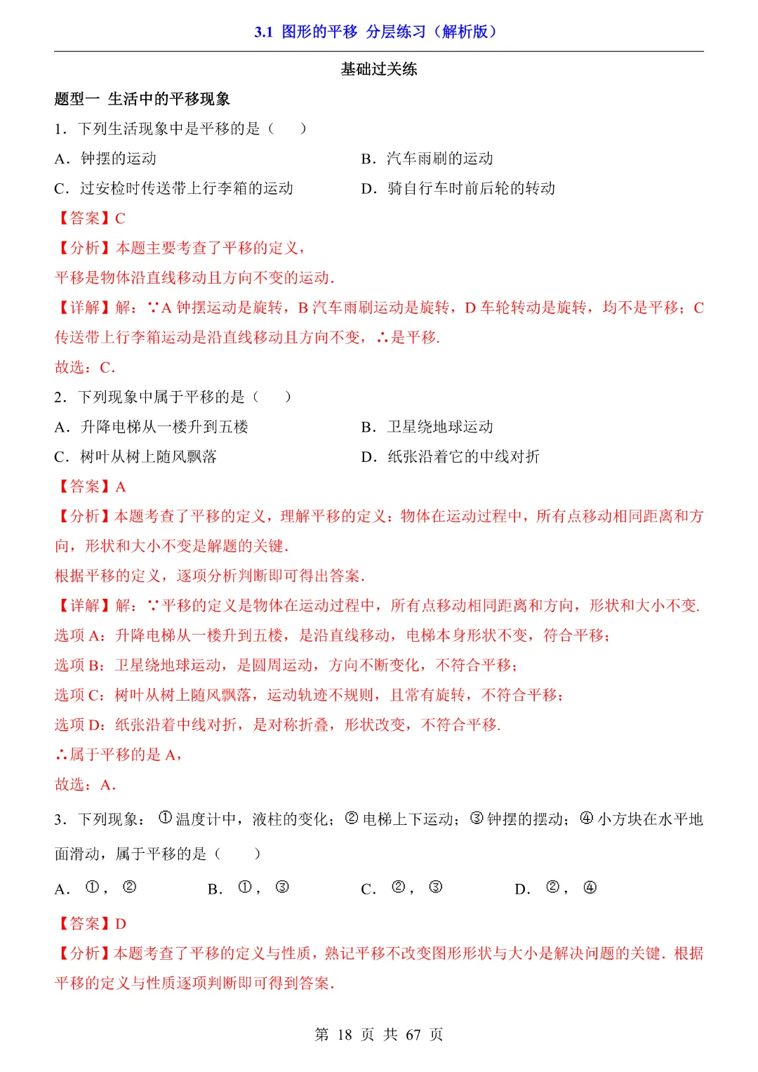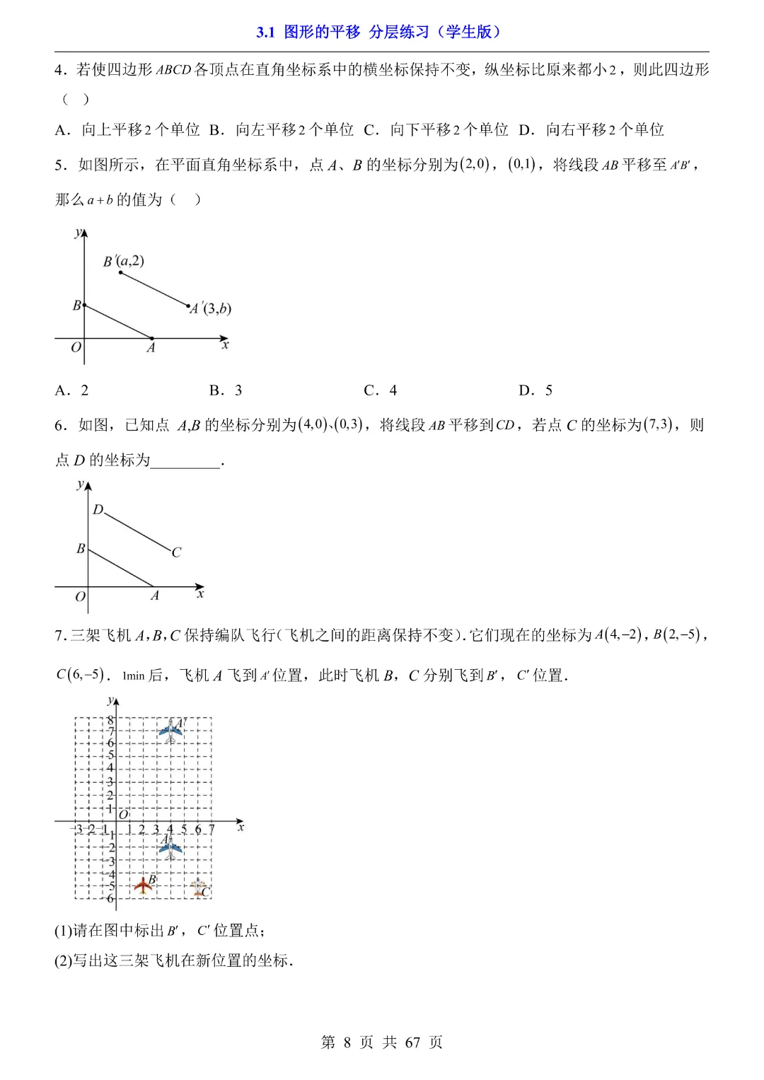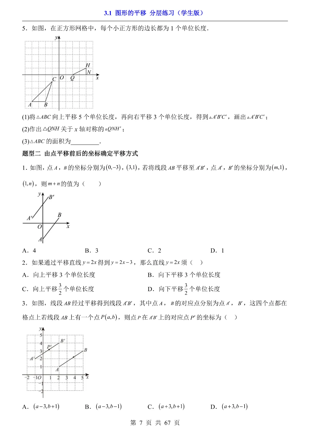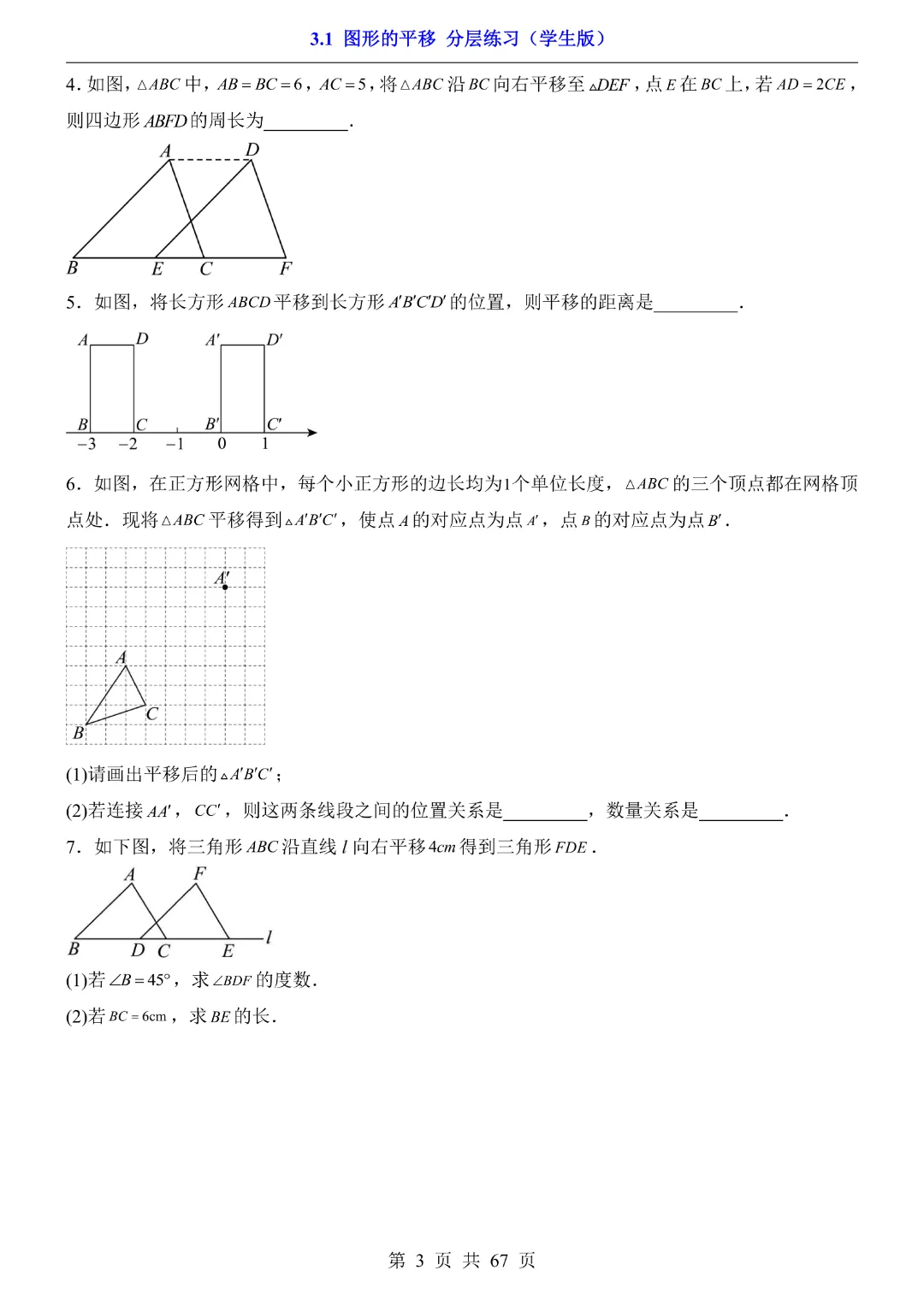八年级下册数学【北师大版】初二下册数学《3.1 图形的平移 分层练习》带答案丨完整可打印