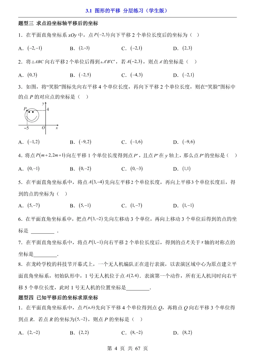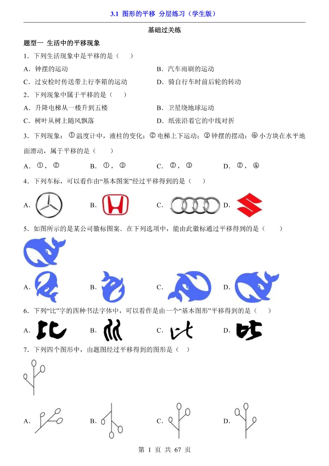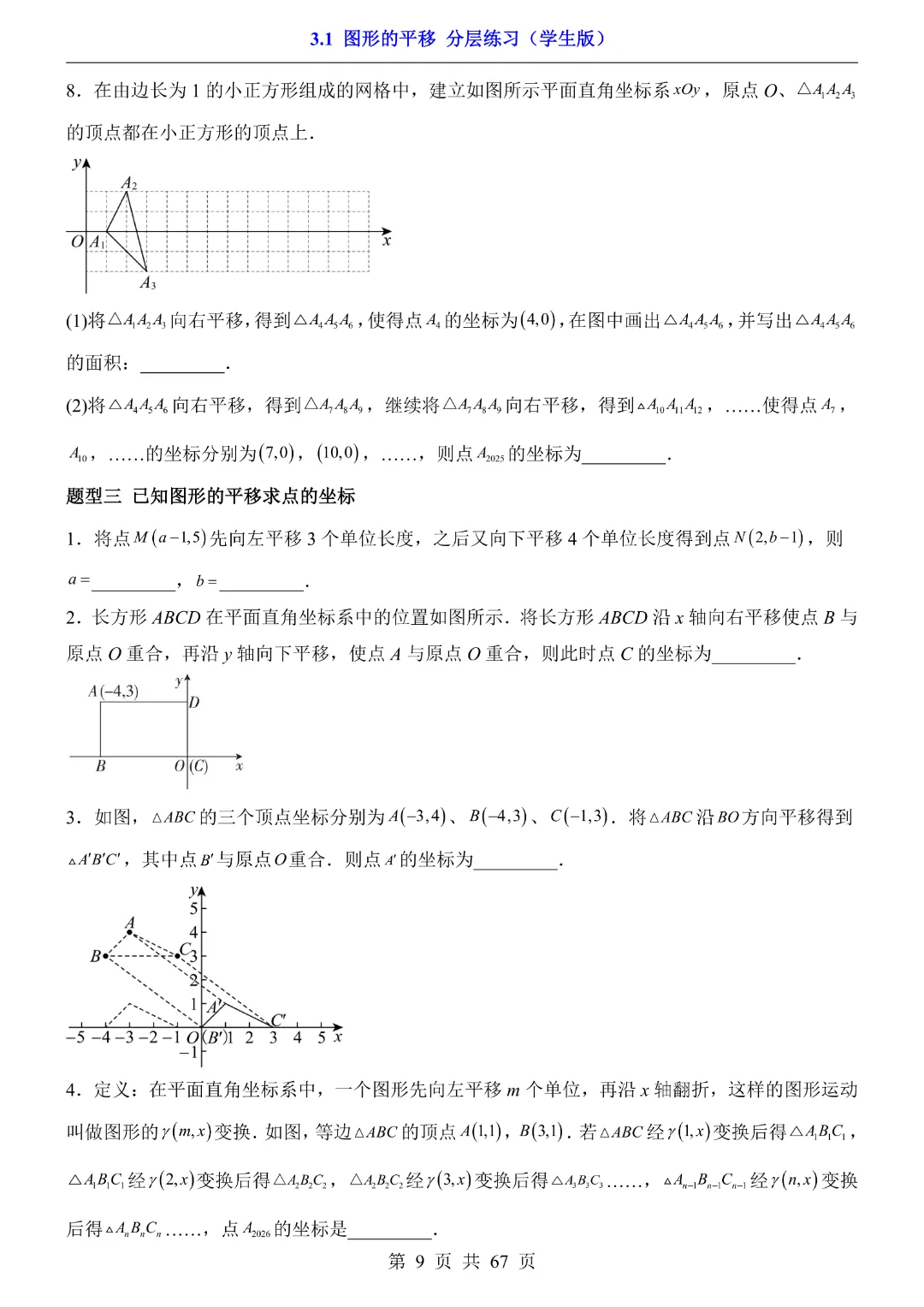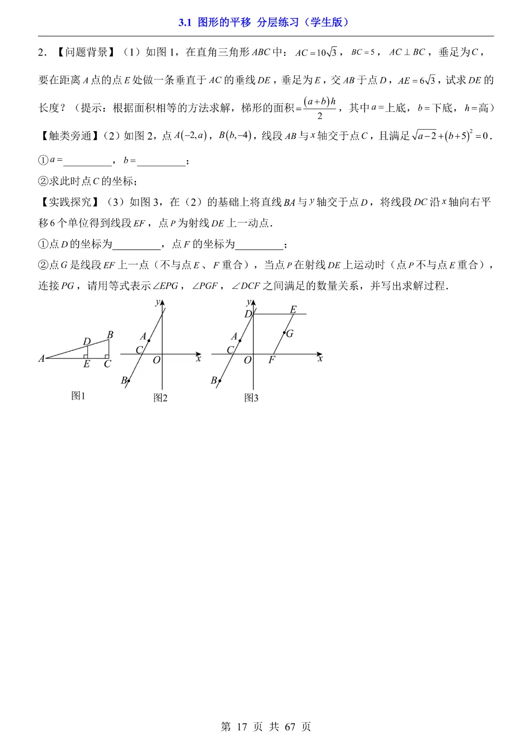 八年级下册数学【北师大版】初二下册数学《3.1 图形的平移 分层练习》带答案丨完整可打印