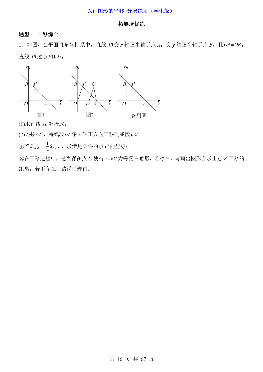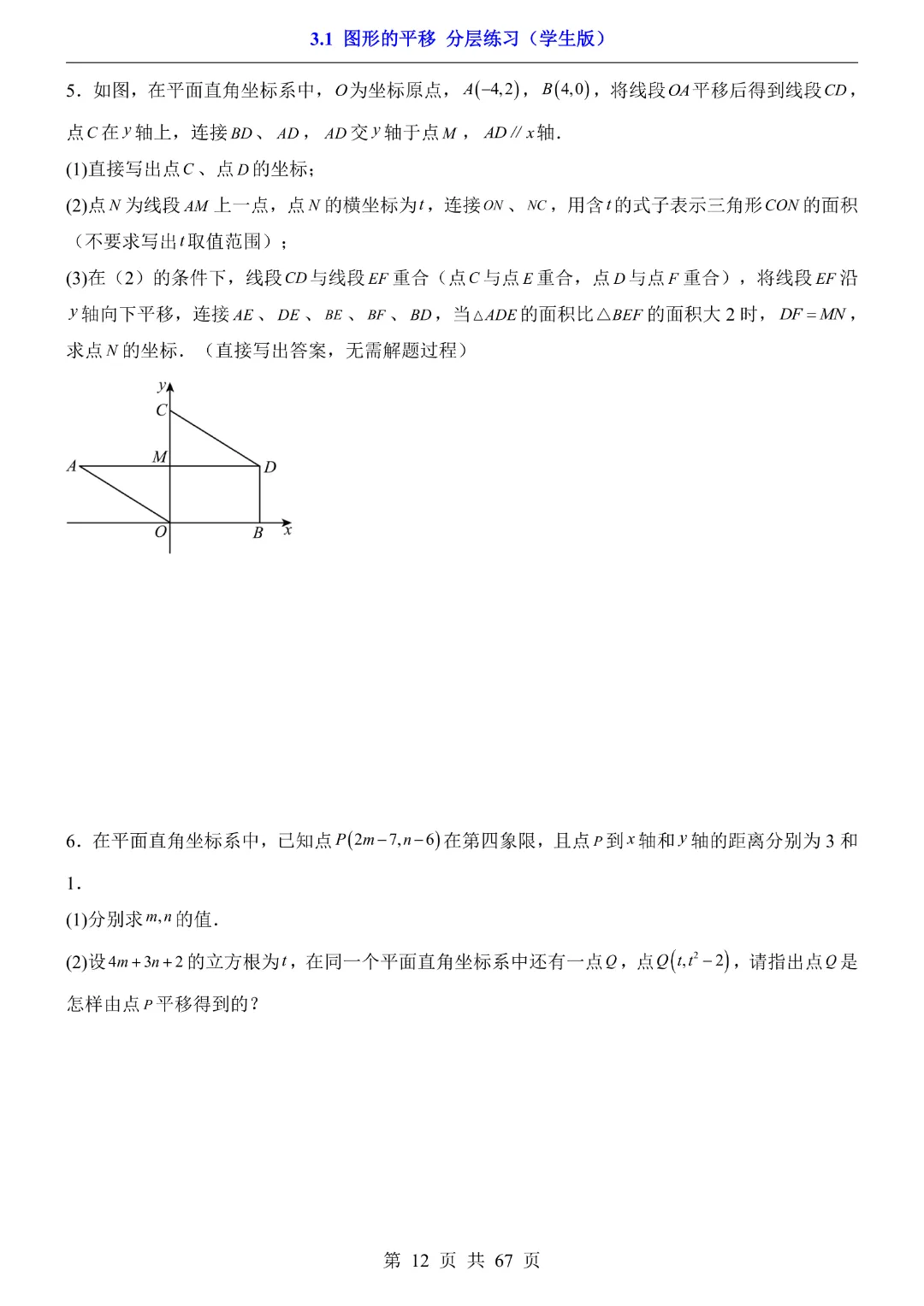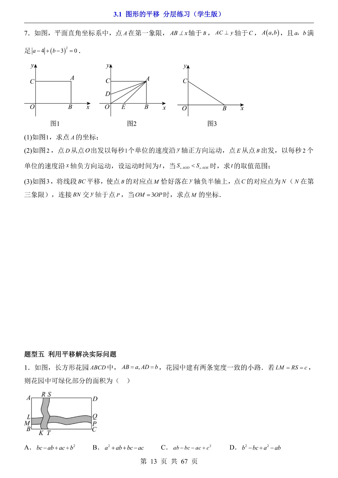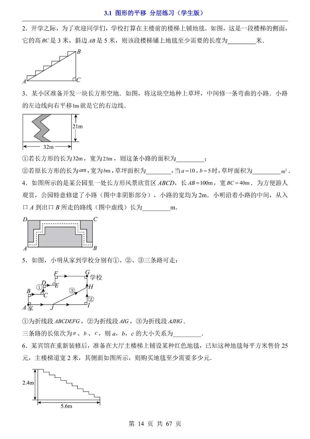 八年级下册数学【北师大版】初二下册数学《3.1 图形的平移 分层练习》带答案丨完整可打印