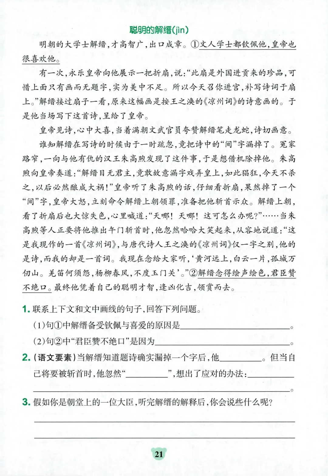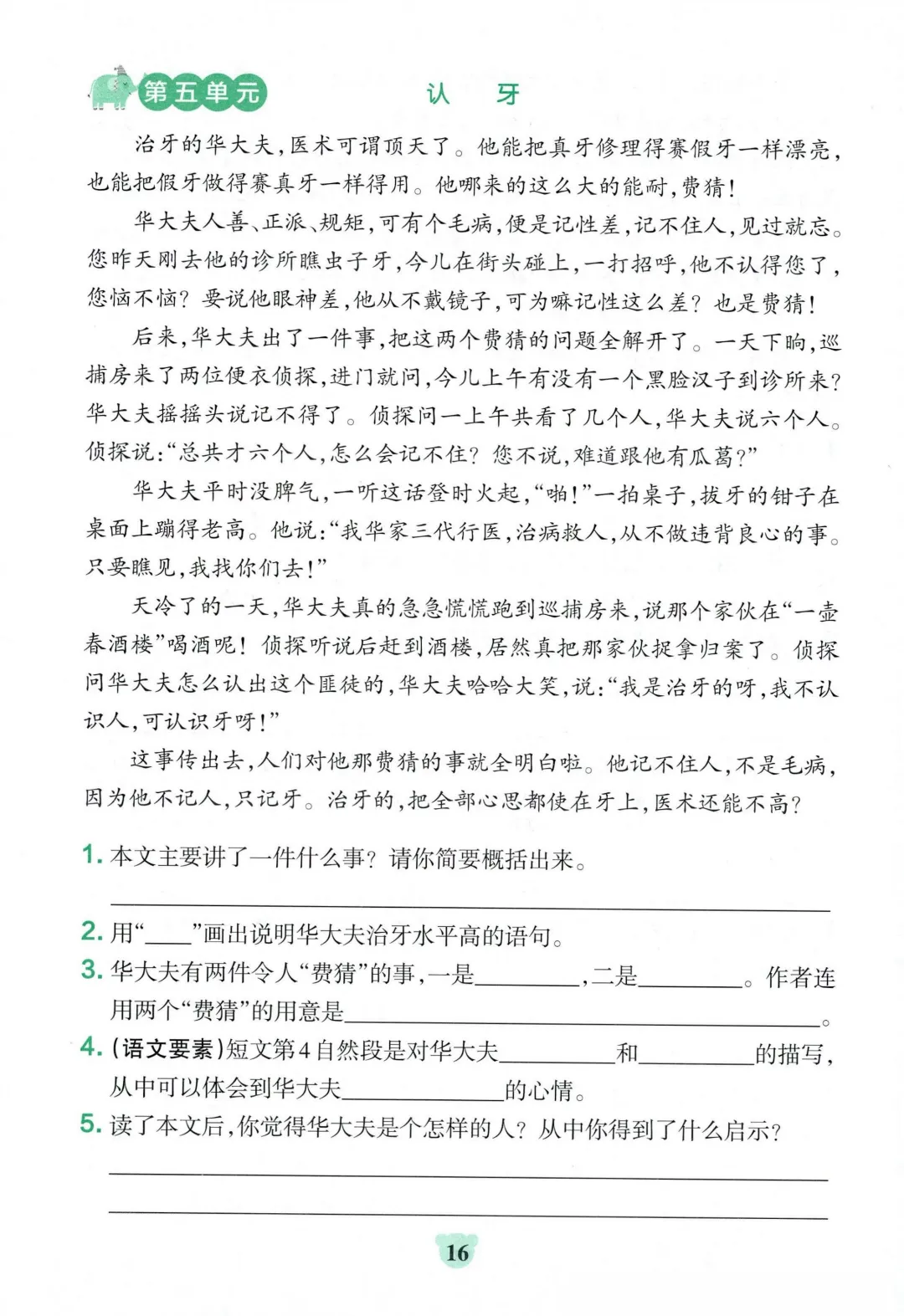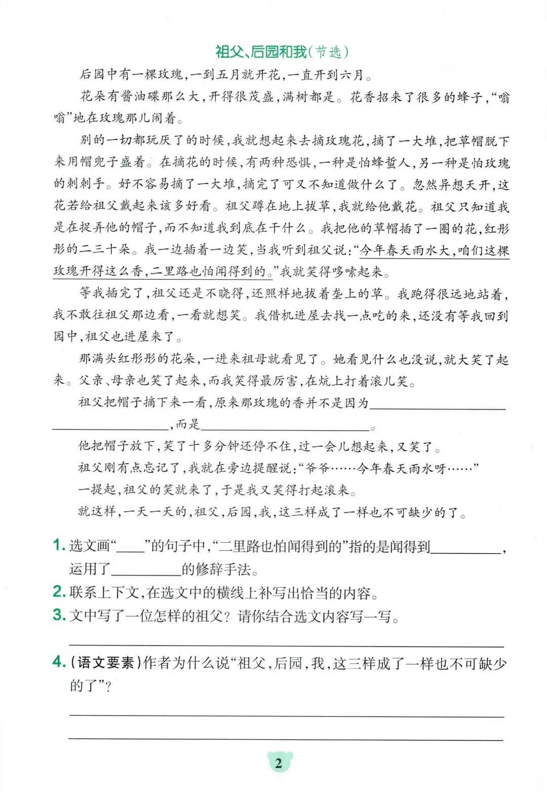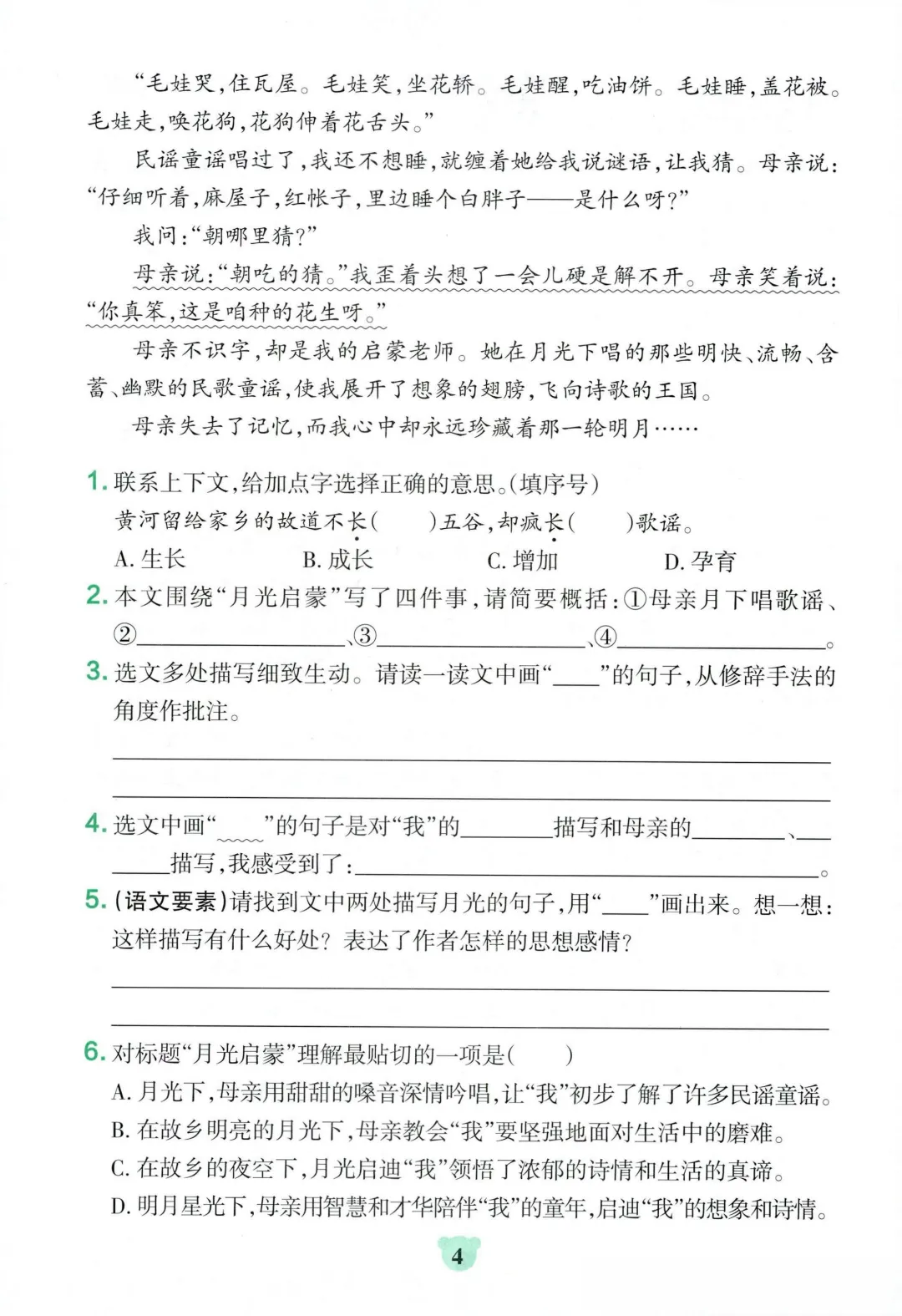 今天给大家分享的是:五年级下册语文【通用版】同步阅读练习带答案丨完整高清电子版可打印