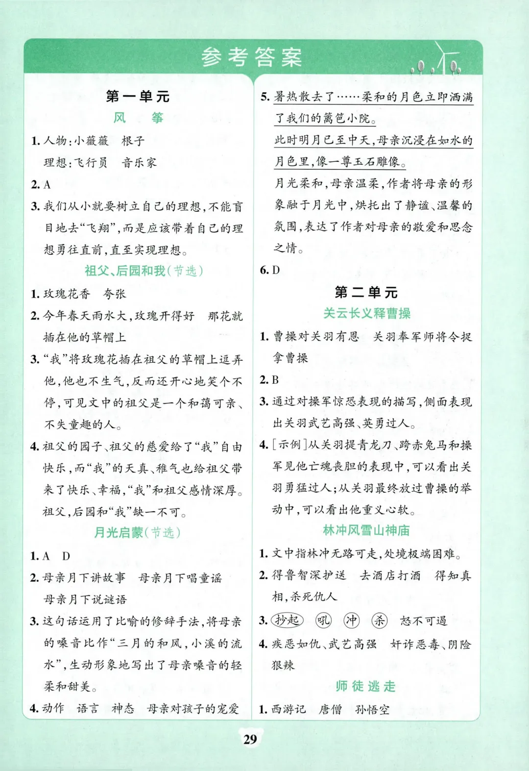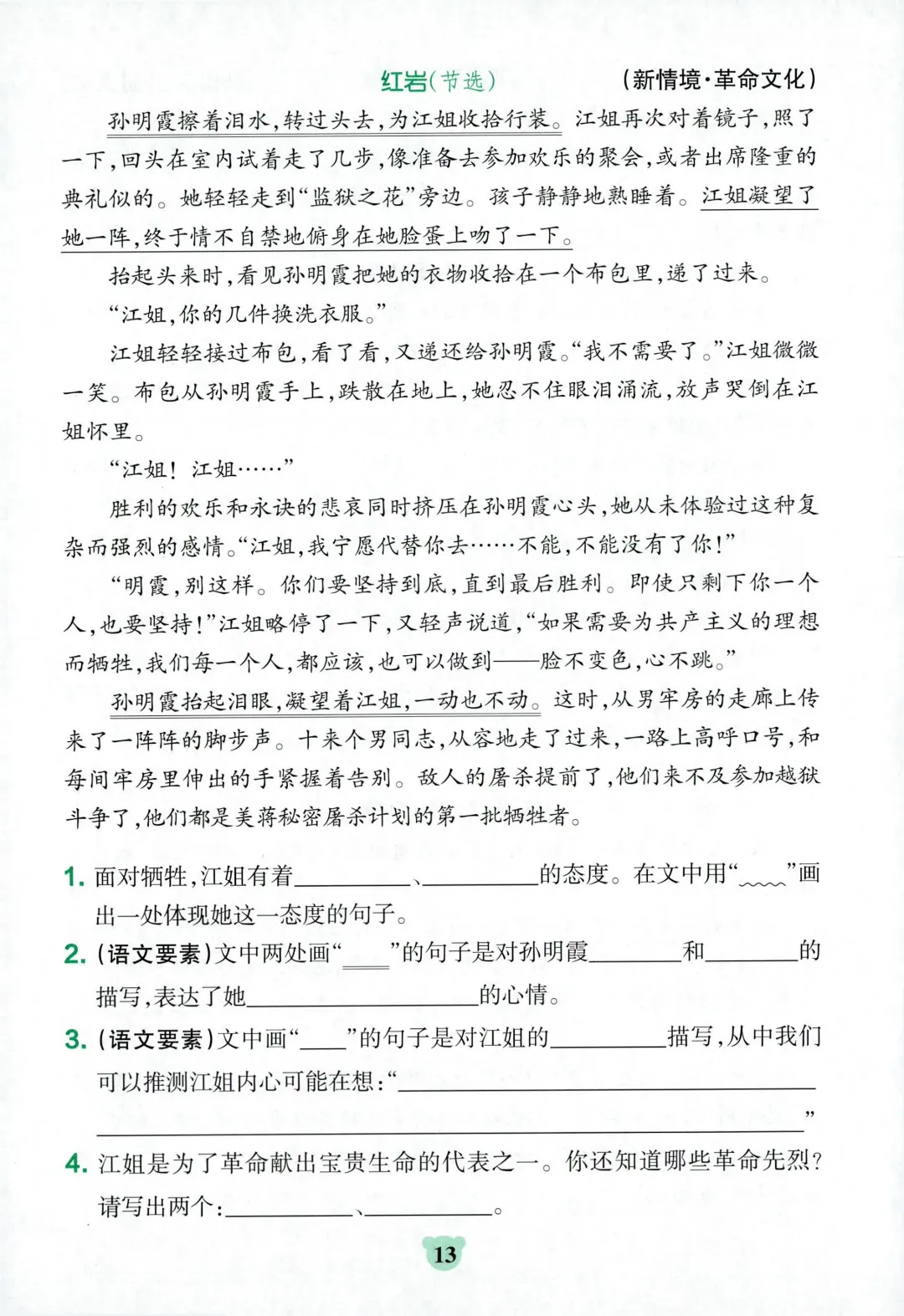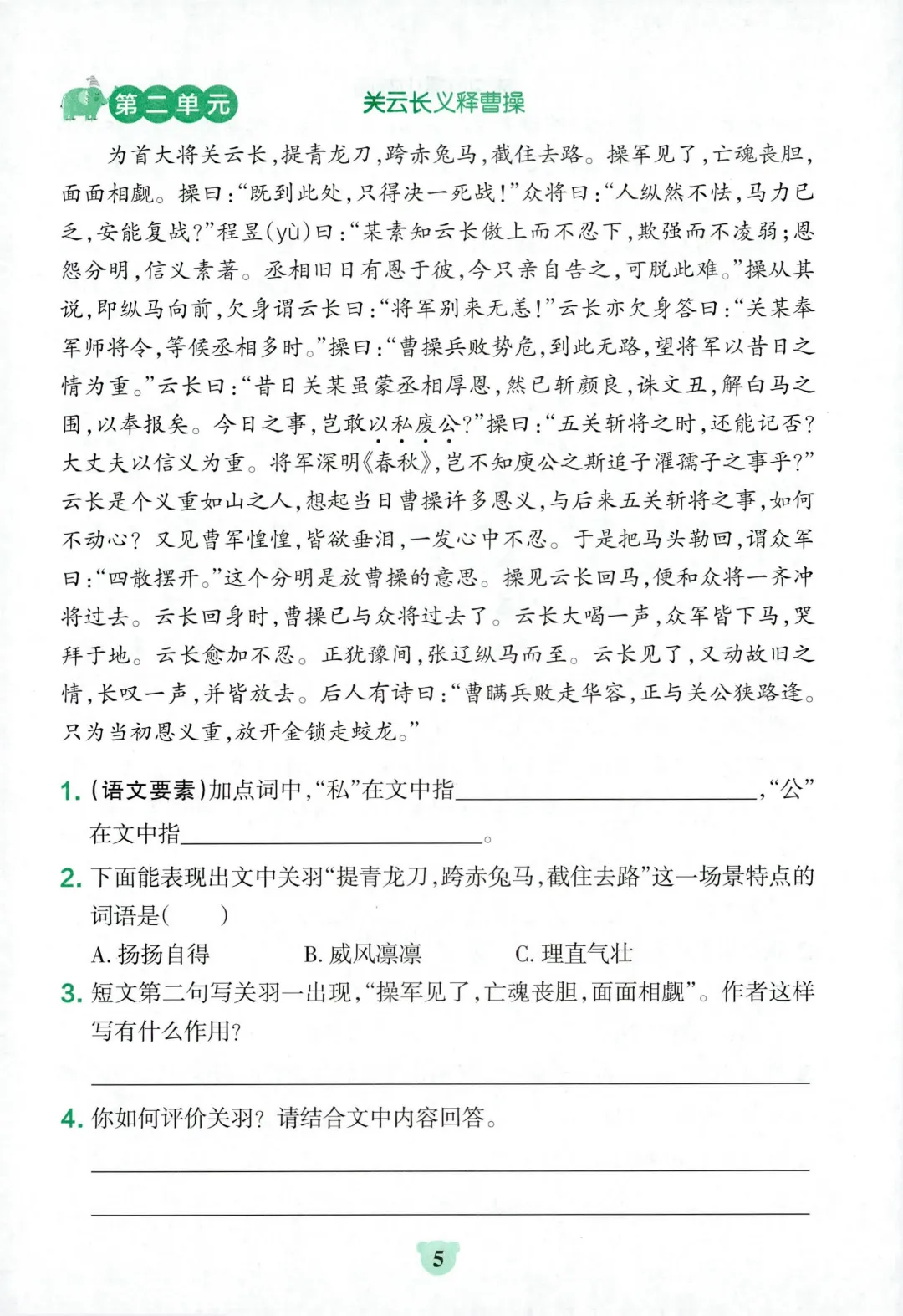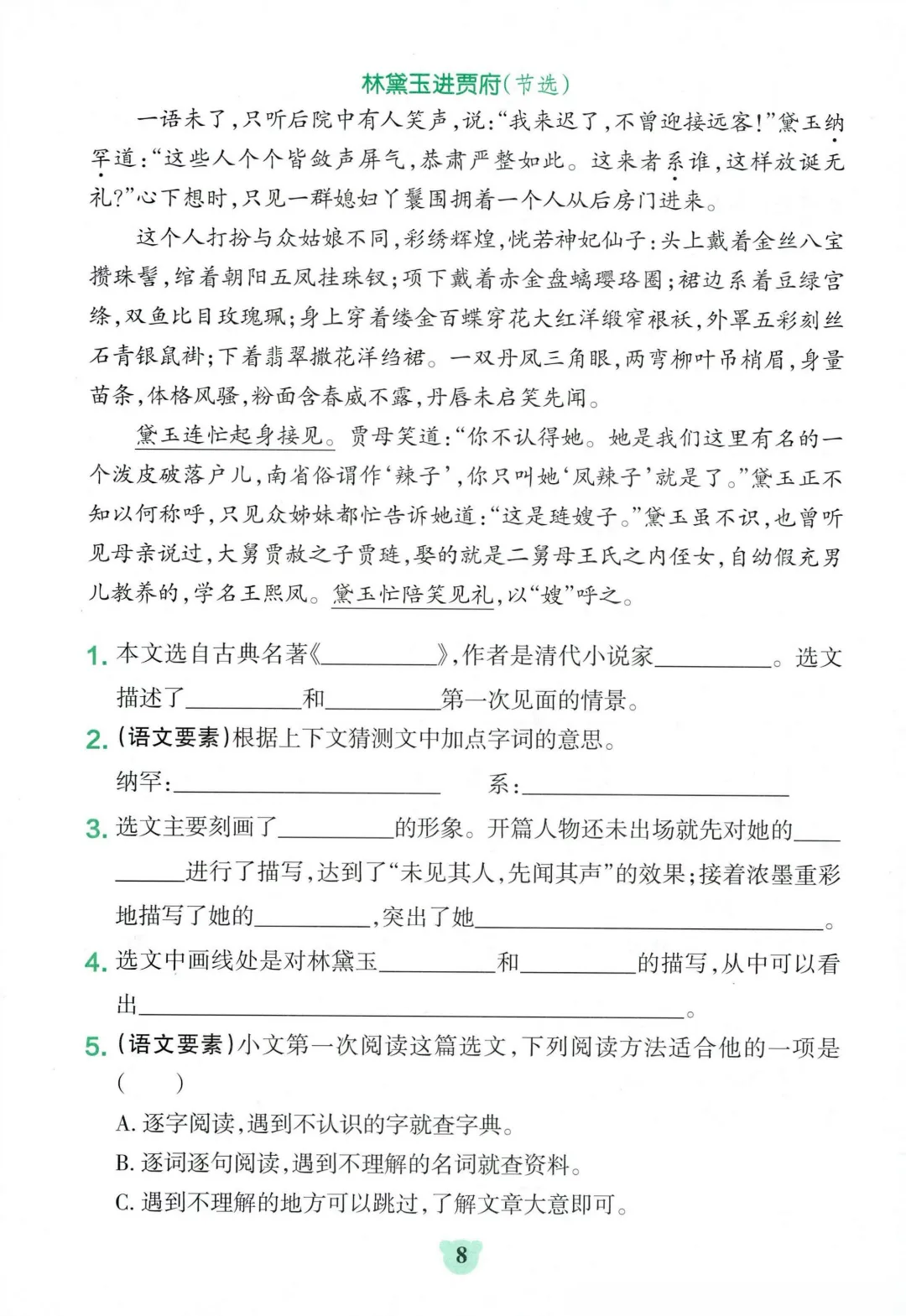 五年级下册语文【通用版】同步阅读练习带答案丨完整高清电子版可打印
